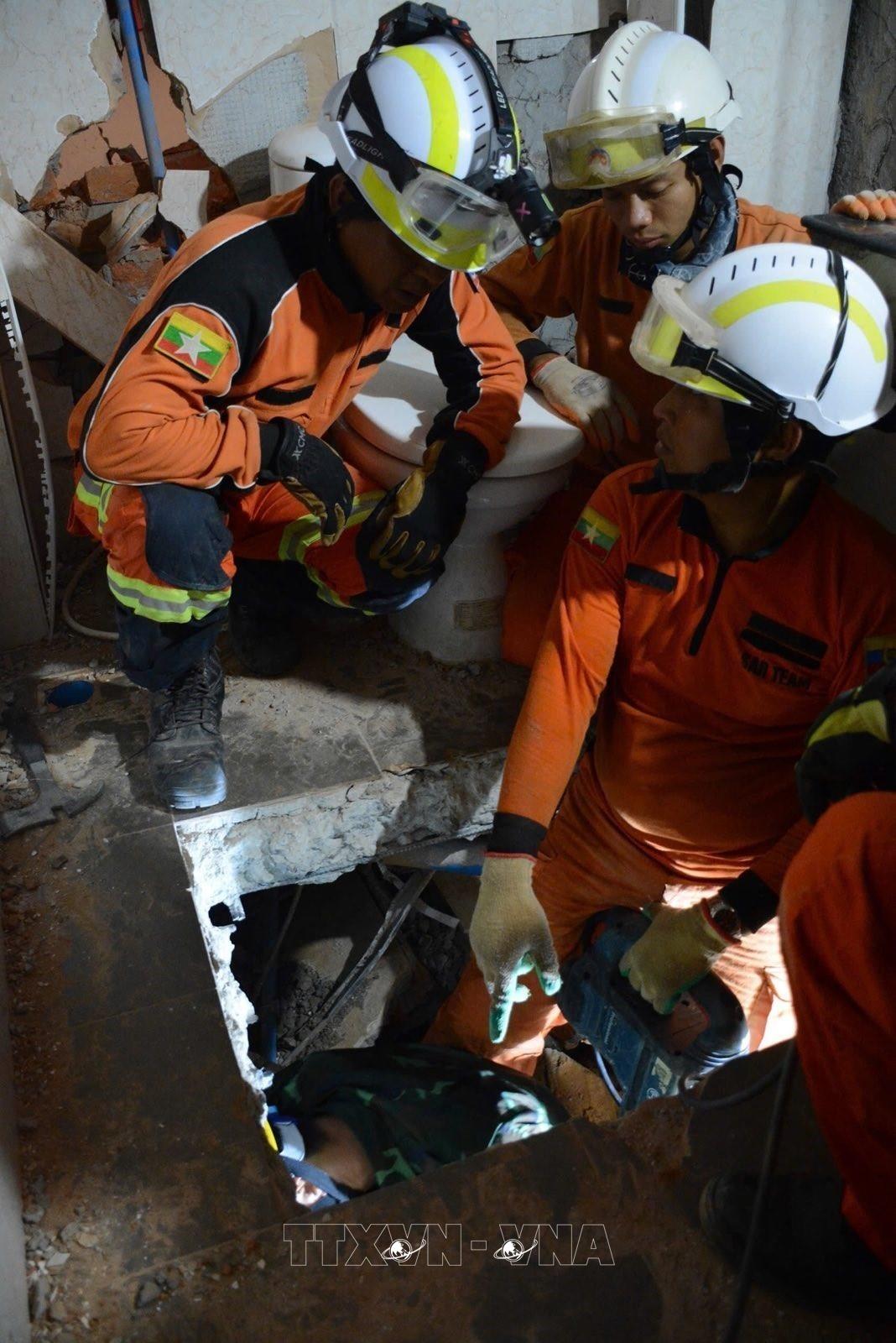[Photo] Lực lượng cứu hộ QĐND Việt Nam nỗ lực giải cứu 1 nạn nhân động đất còn sống ở Myanmar