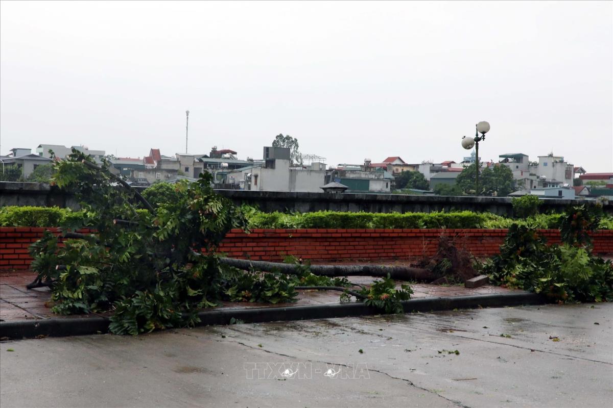 Do ảnh hưởng của bão số 3, cây cối bị gãy đổ tại Ninh Bình (22/7/2025). Ảnh: Đại Nghĩa - TTXVN
