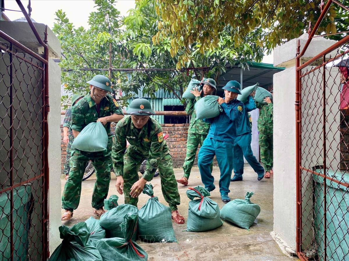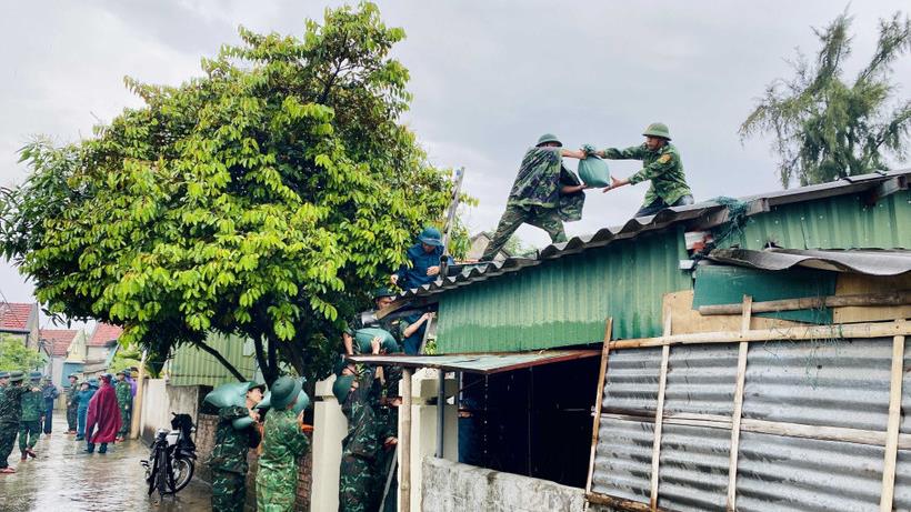 [Photo] Lực lượng quân đội hỗ trợ người dân Hà Tĩnh ứng phó bão số 3