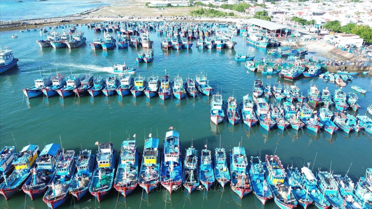 Đội tàu của ngư dân Ninh Thuận neo đậu tại cảng cá Mỹ Tân (xã Thanh Hải, huyện Ninh Hải). Ảnh: Nguyễn Thành - TTXVN
