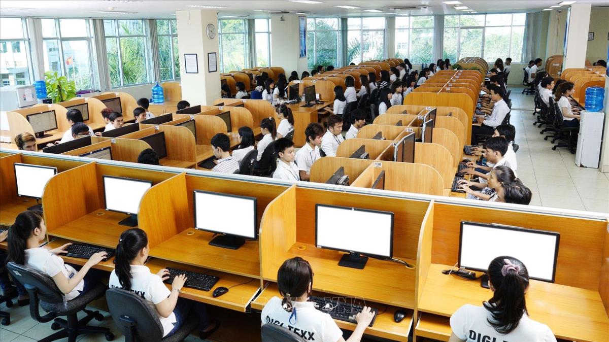 Công ty DIGI-TEXX (100% vốn đầu tư từ Đức) chuyên về lĩnh vực công nghệ thông tin tại Công viên phần mềm Quang Trung (Thành phố Hồ Chí Minh). Ảnh: TTXVN