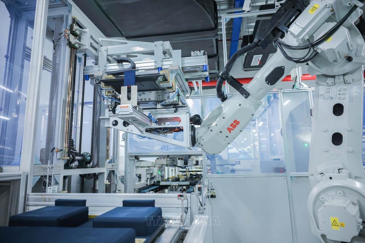 Hệ thống máy móc hiện đại của Công ty TNHH điện tử Regza Việt Nam chuyên sản xuất tivi tại KCN Long Thành, tỉnh Đồng Nai. Ảnh: Hoàng Hiếu - TTXVN