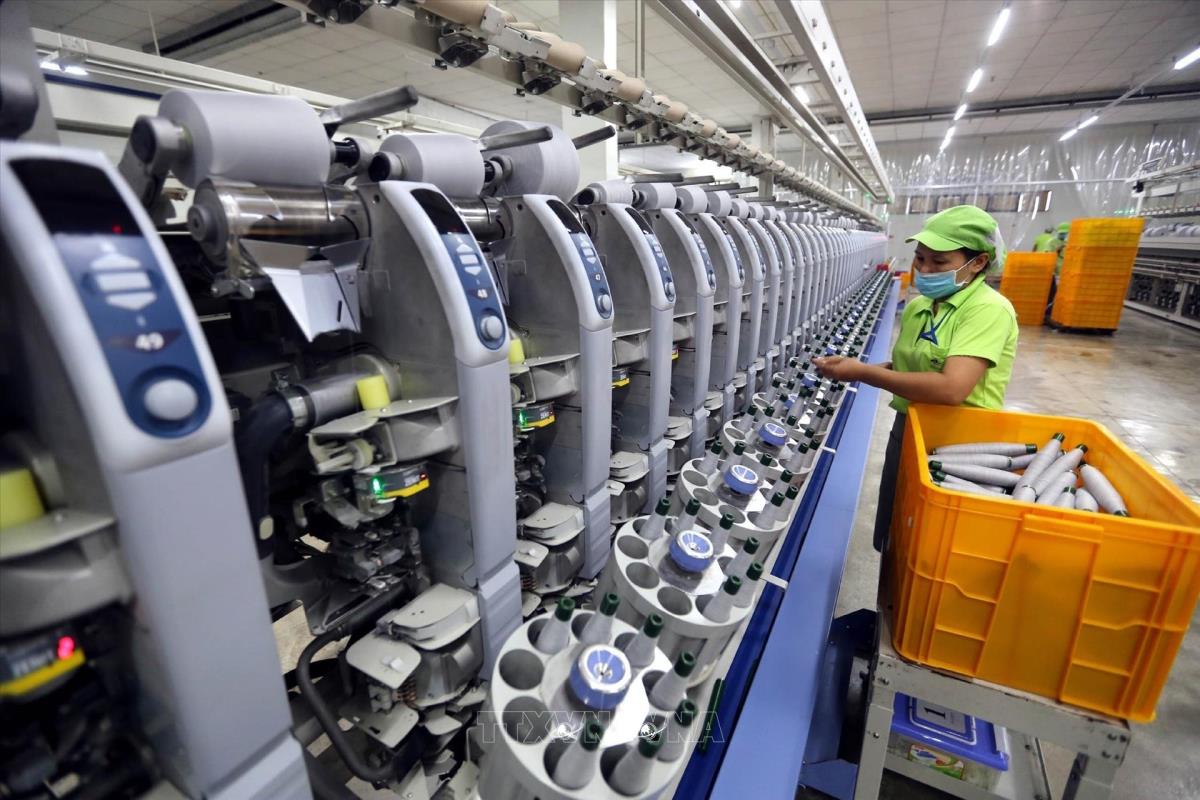 Dây chuyền sản xuất sợi của Công ty TNHH Tah Tong Viet Nam (vốn đầu tư Đài Loan (Trung Quốc)) tại Khu công nghiệp Mỹ Xuân B1 (tỉnh Bà Rịa –Vũng Tàu). Ảnh: Danh Lam – TTXVN
