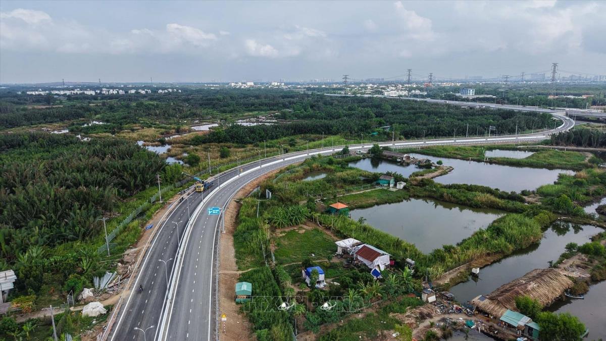 Hơn 18 km đường cao tốc Bến Lức - Long Thành đoạn từ nút giao Quốc lộ 1 (Km3+420) đến nút giao Nguyễn Văn Tạo (Km21+850) nối tỉnh Long An với tỉnh Đồng Nai đi qua địa bàn Thành phố Hồ Chí Minh đã hoàn thành và thông xe vào dịp 30/4/2025. Ảnh: Hoàng Hiếu – TTXVN