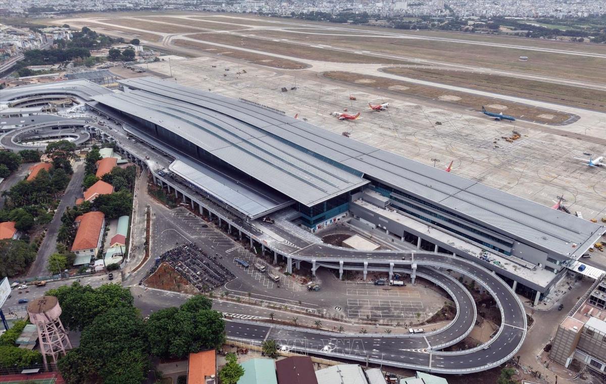Sau hơn 2 năm triển khai, Nhà ga T3 tại sân bay Tân Sơn Nhất (Thành phố Hồ Chí Minh) đã hoàn thành đúng dịp Kỷ niệm 50 năm Giải phóng miền Nam, thống nhất đất nước. Ảnh: TTXVN phát
