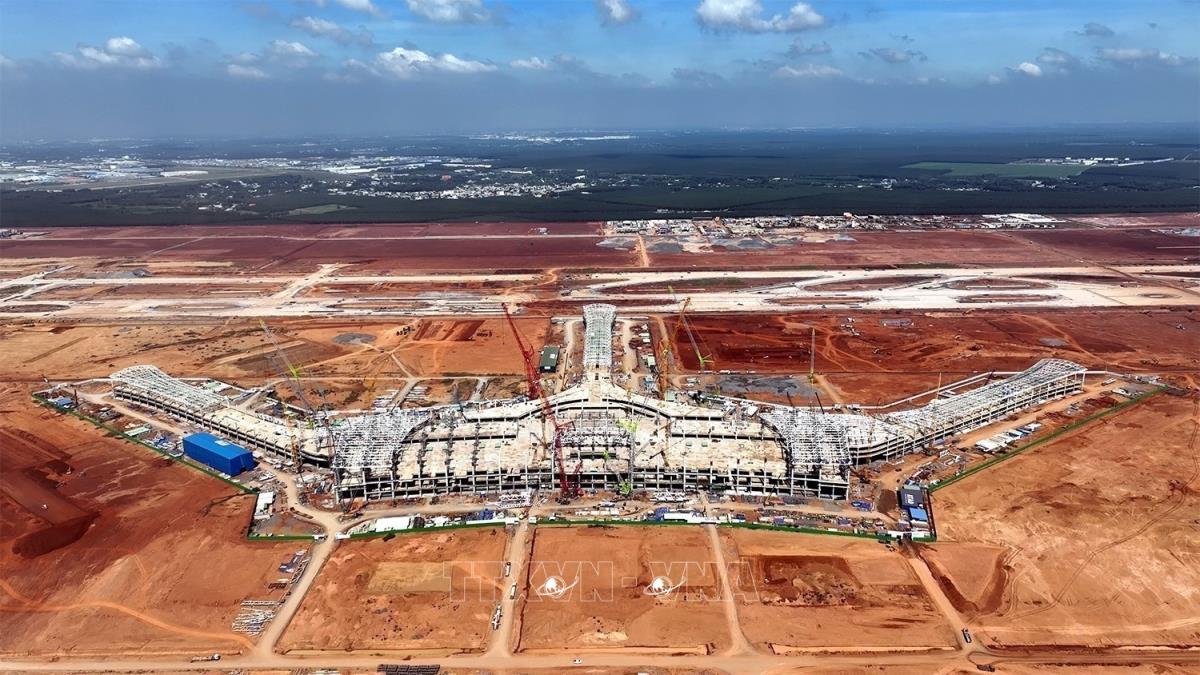 Cảng Hàng không Quốc tế Long Thành đang trong quá trình xây dựng tại huyện Long Thành, tỉnh Đồng Nai, cách Thành phố Hồ Chí Minh khoảng 40 km về phía Đông. Với công suất lên đến 100 triệu hành khách/năm khi hoàn thành, đây sẽ là sân bay lớn nhất Việt Nam trong tương lai. Ảnh: Trung Nguyên - TTXVN
