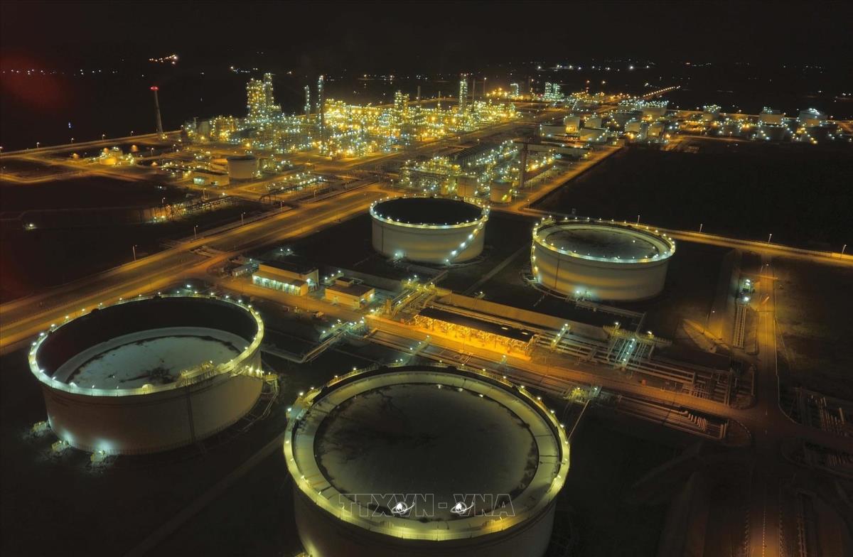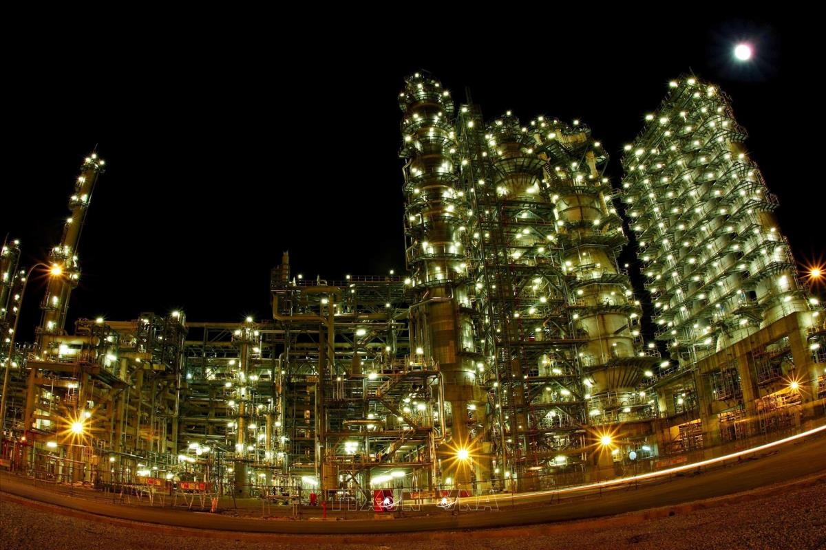 Đêm trên nhà máy lọc dầu Dung Quất (Quảng Ngãi). Ảnh: Quang Nhựt - TTXVN