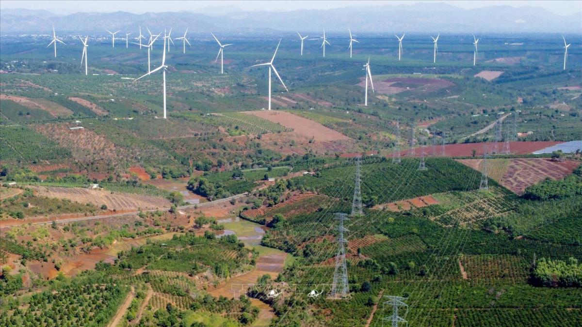 Điện năng lượng tái tạo đang phát triển tại các tỉnh Tây Nguyên. Trong ảnh: Khu điện gió tại tỉnh Gia Lai. Ảnh: Huy Hùng - TTXVN