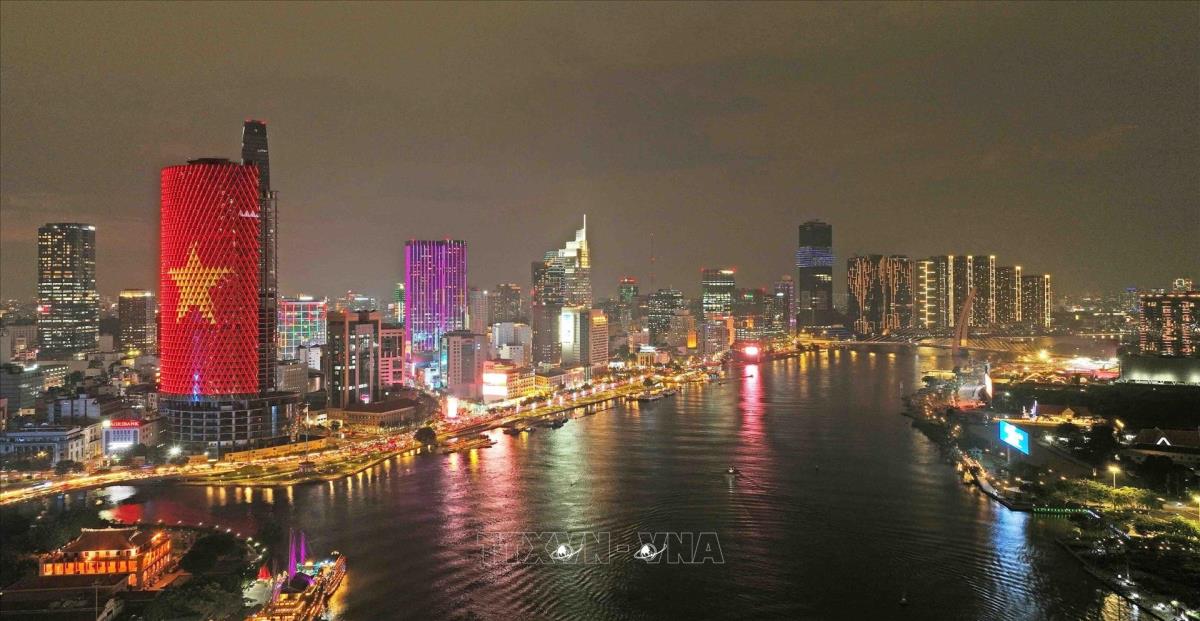 Thành phố Hồ Chí Minh - trung tâm kinh tế, văn hóa, du lịch đầu tàu của cả nước rực sáng trong đêm. Ảnh: Vũ Sinh - TTXVN