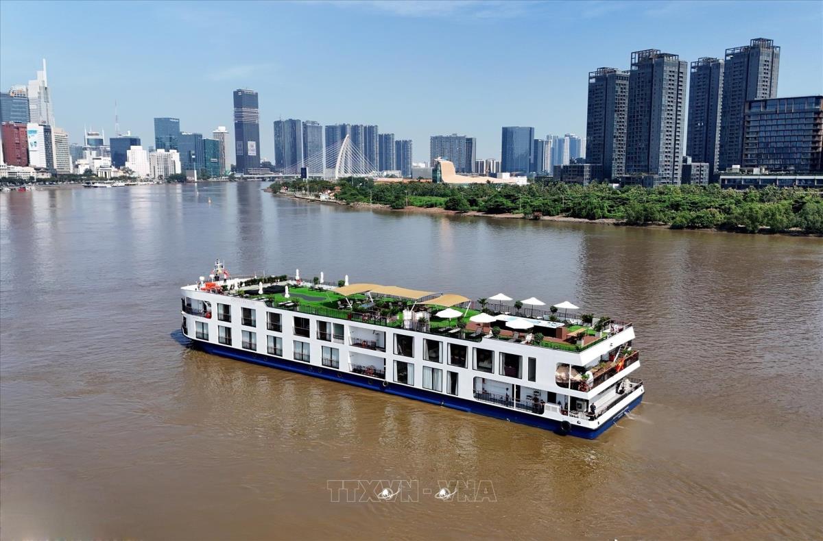 Du thuyền trên sông Sài Gòn, khám phá cảnh quan Thành phố Hồ Chí Minh, là một trong những sản phẩm du lịch độc đáo được nhiều khách đặt tour trong dịp 30/4 này. Ảnh: Hồng Đạt - TTXVN