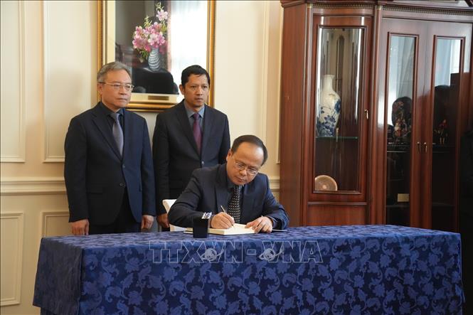 Đại diện Đại sứ quán Lào tại LB Nga ghi sổ tang chia buồn tại lễ viếng nguyên Chủ tịch nước Trần Đức Lương (24/5/2025).