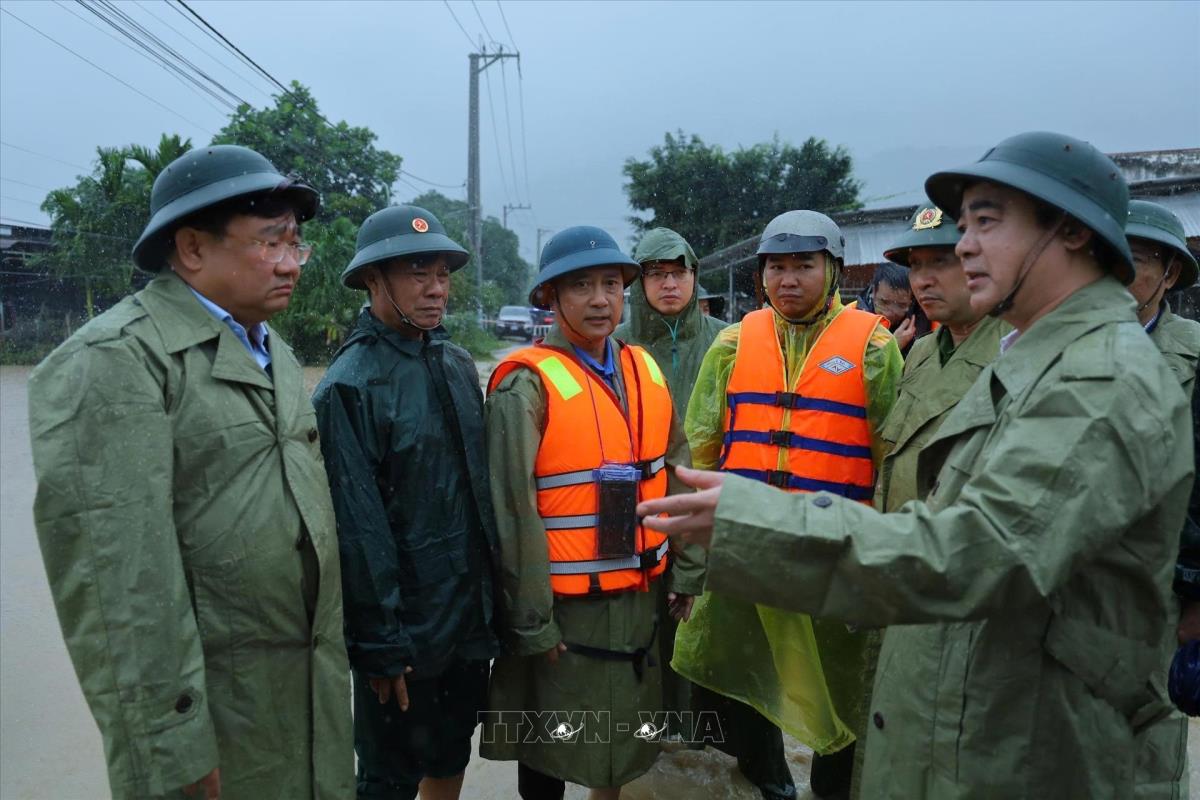 Bí thư Tỉnh ủy Khánh Hòa Nghiêm Xuân Thành kiểm tra công tác ứng phó với tình hình mưa lũ tại phường Ba Ngòi (19/11/2025). Ảnh: TTXVN phát
