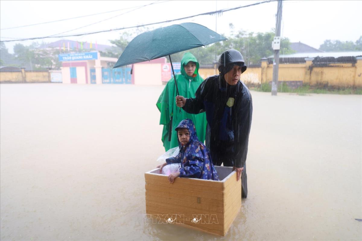 Người dân xã Diên Điền (Khánh Hòa) khẩn trương di chuyển tránh lụt (19/11/2025). Ảnh: Nguyễn Thành – TTXVN