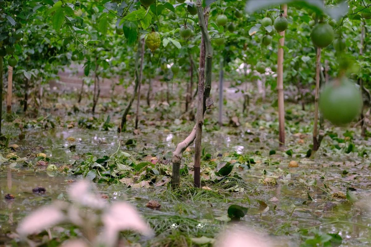 Vườn chanh dây xuất khẩu của nhà vườn tại xã Ka Đô (Lâm Đồng) có nguy cơ thiệt hại do ngập trong nước lũ hai ngày qua. Ảnh: Nguyễn Dũng – TTXVN