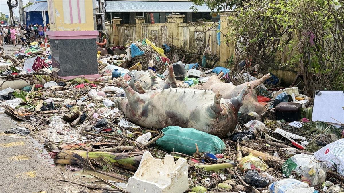 Gia súc chết trôi ngoài đường tại khu phố Quy Hậu (phường Tuy Hoà). Ảnh: Tường Quân - TTXVN