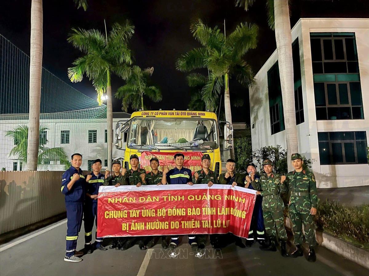 Các lực lượng vận chuyển hàng hoá thiết yếu đợt I vào hỗ trợ tỉnh Lâm Đồng. Ảnh: Thanh Vân-TTXVN