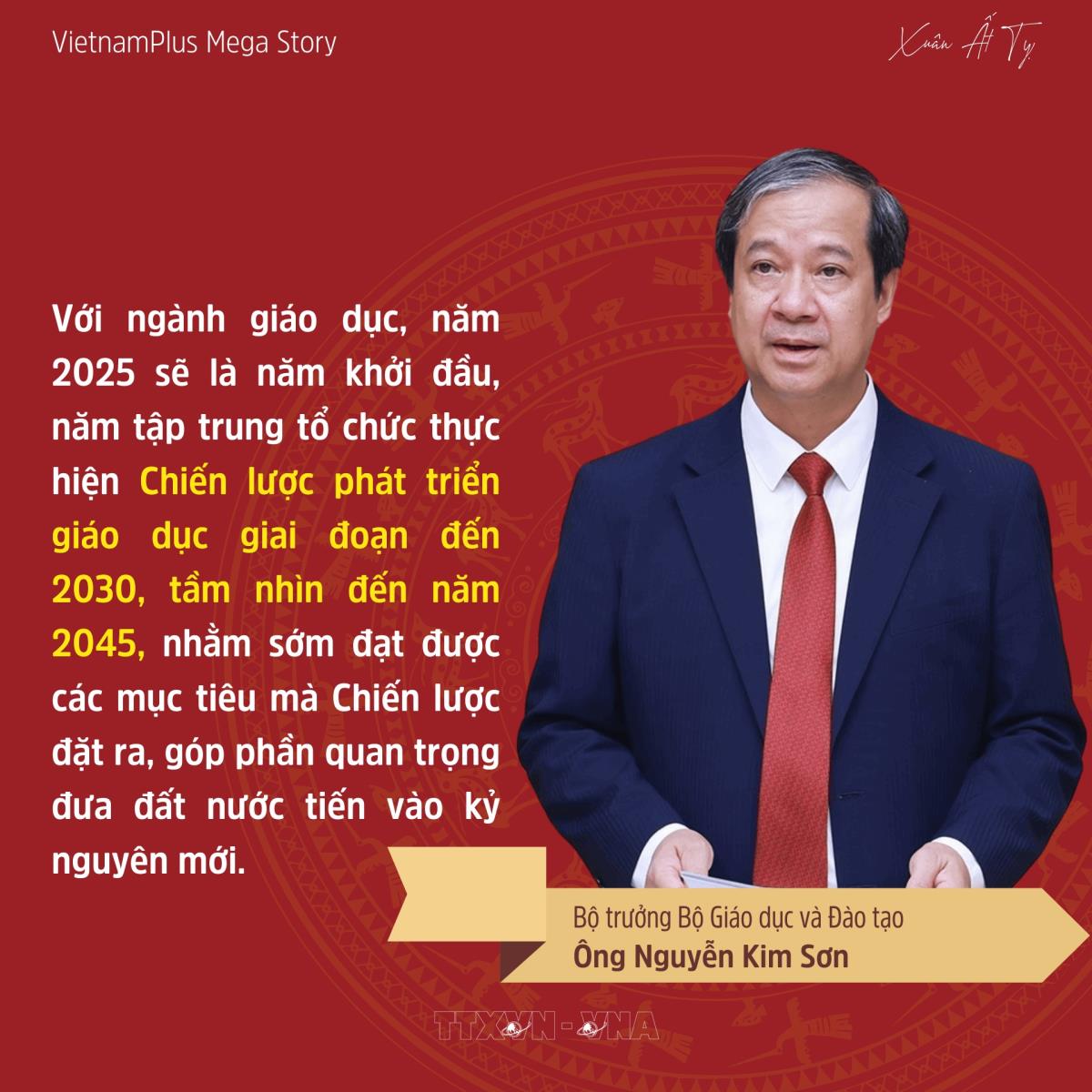 Với ngành giáo dục, năm 2025 sẽ là năm khởi đầu, năm tập trung tổ chức thực hiện Chiến lược phát triển giáo dục giai đoạn đến 2030, tầm nhìn đến năm 2045, nhằm sớm đạt được các mục tiêu mà Chiến lược đặt ra, góp phần quan trọng đưa đất nước tiến vào kỷ nguyên mới.