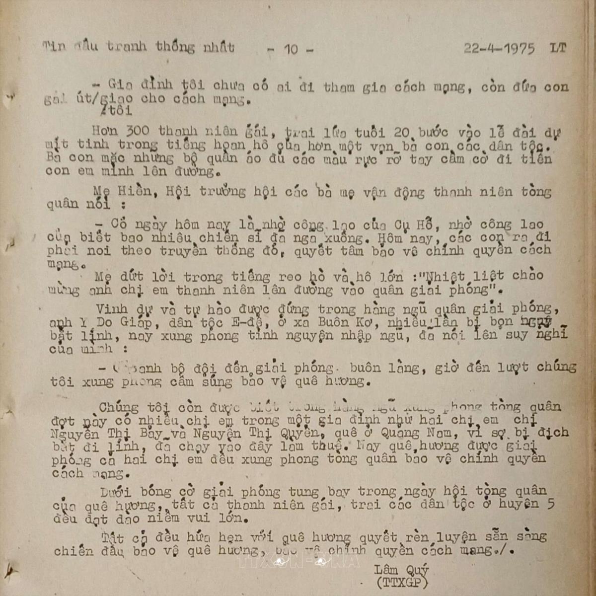 Ngày hội tòng quân Tin đấu tranh thống nhất của Việt Nam Thông tấn xã, ngày 22/4/1975 Từ khóa:Giải phóng miền Namthống nhất đất nướcThông tấn xã Giải phóngĐắk LắkTây Nguyên