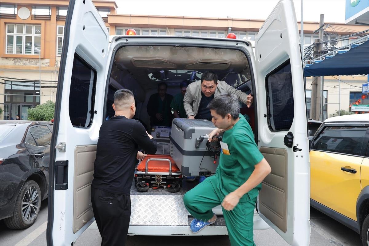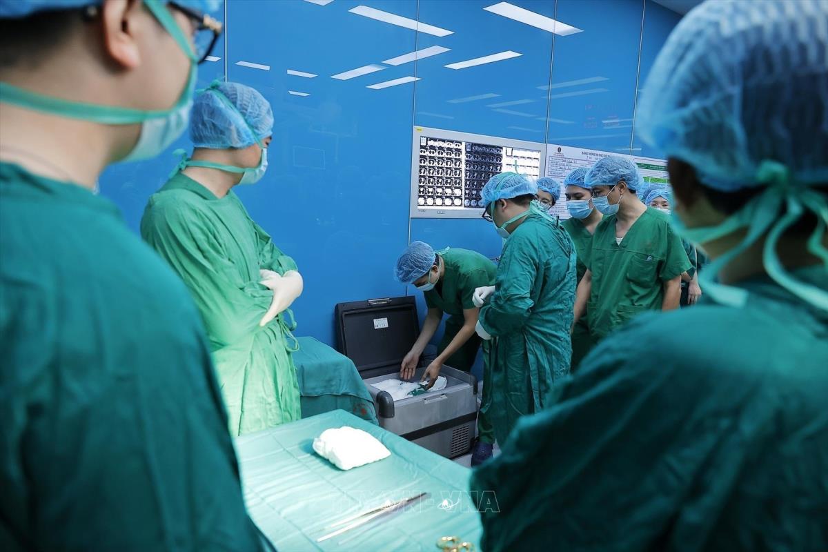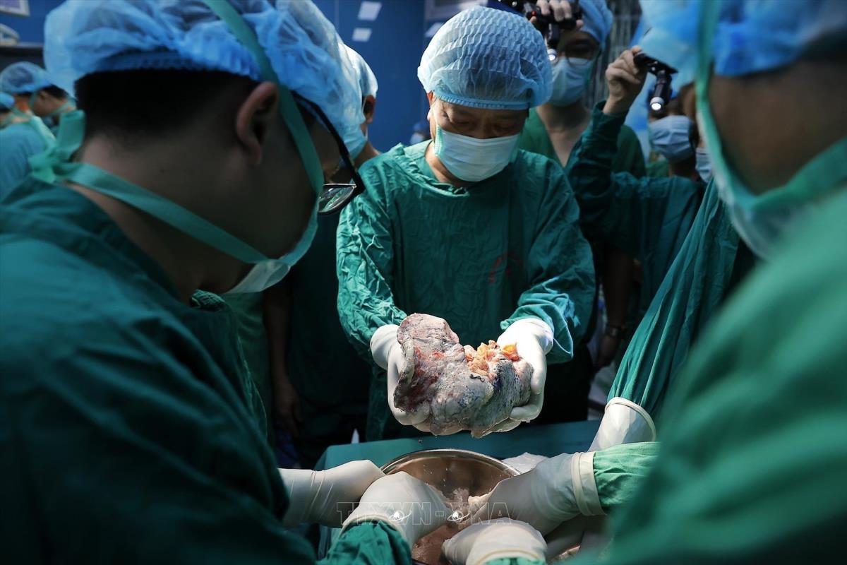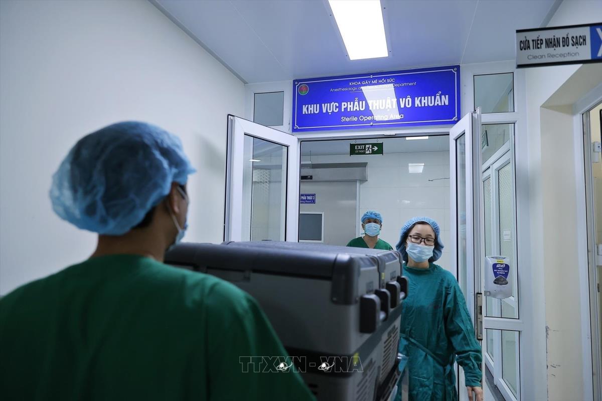 Quy trình lấy và ghép phổi vô cùng phức tạp, yêu cầu trình độ kỹ thuật cao và sự hỗ trợ của nhiều lĩnh vực chuyên sâu như bảo quản và vận chuyển tạng bằng công nghệ hiện đại, kiểm soát nhiễm khuẩn nghiêm ngặt, gây mê hồi sức, phẫu thuật lồng ngực, huyết học, phục hồi chức năng và dinh dưỡng... Ảnh: Minh Quyết – TTXVN