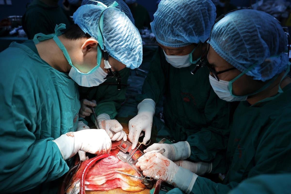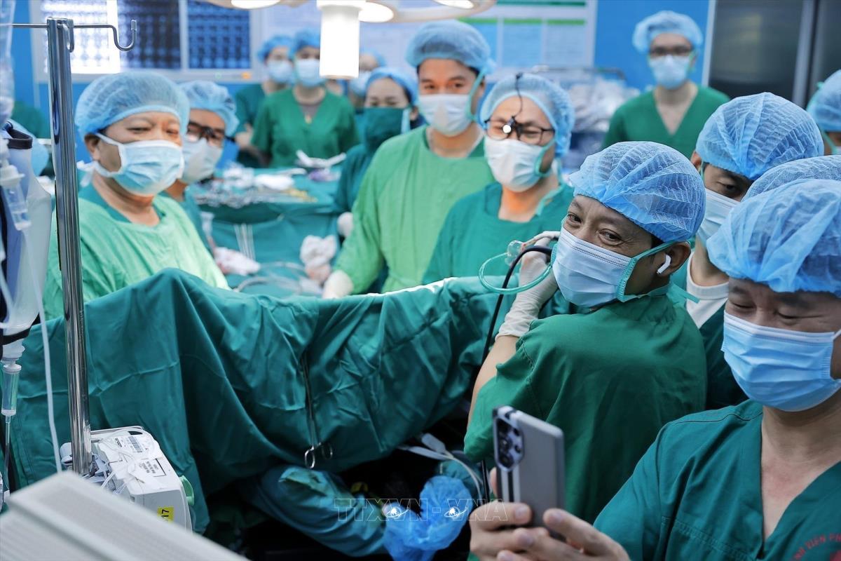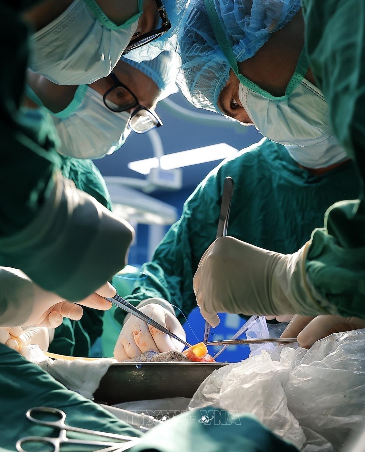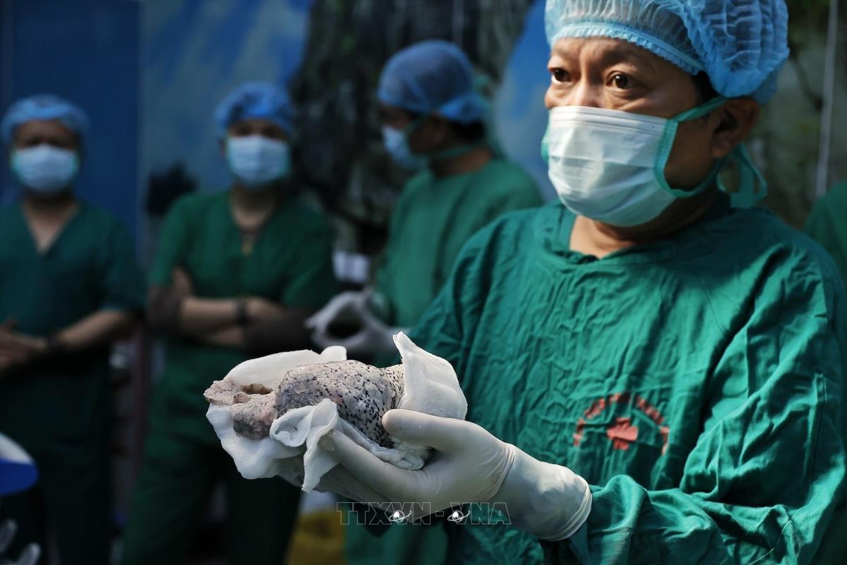 Quy trình lấy và ghép phổi vô cùng phức tạp, yêu cầu trình độ kỹ thuật cao và sự hỗ trợ của nhiều lĩnh vực chuyên sâu như bảo quản và vận chuyển tạng bằng công nghệ hiện đại, kiểm soát nhiễm khuẩn nghiêm ngặt, gây mê hồi sức, phẫu thuật lồng ngực, huyết học, phục hồi chức năng và dinh dưỡng... Ảnh: Minh Quyết – TTXVN
