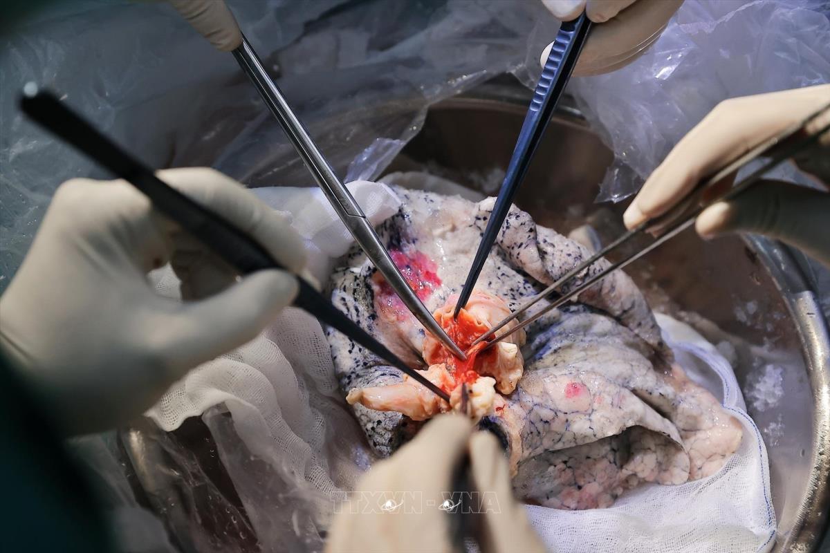 Đây là kỹ thuật đòi hỏi sự phối hợp nghiêm ngặt, chính xác và đồng bộ của toàn bộ hệ thống chuyên môn, từ khâu đánh giá tình trạng phổi của người cho và người nhận cho đến từng bước trong quá trình phẫu thuật. Ảnh: Minh Quyết – TTXVN