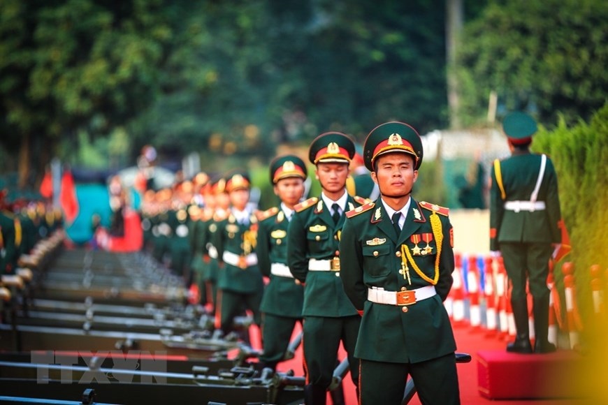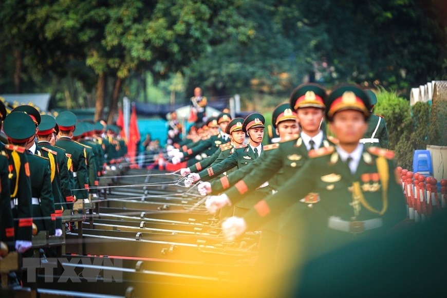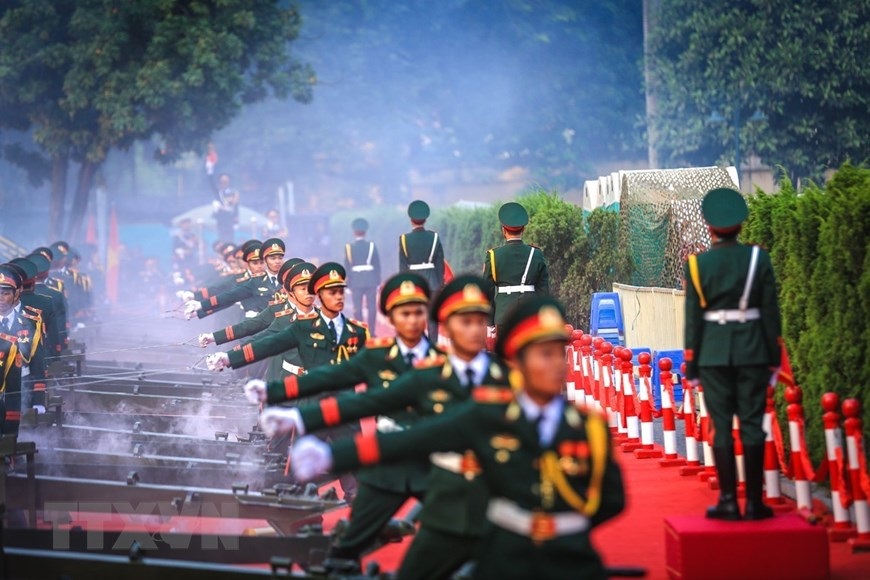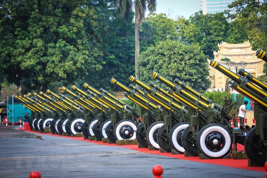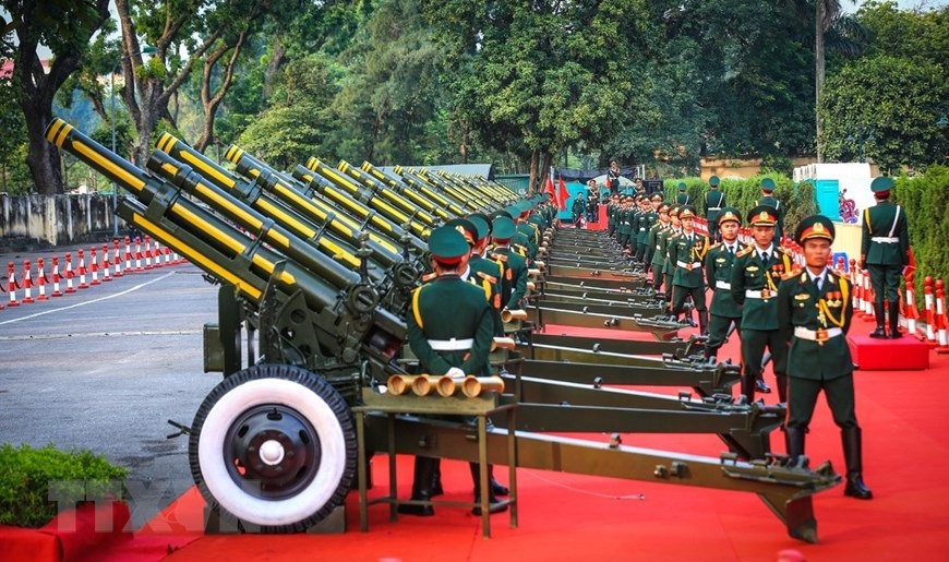 21 phát đại bác rền vang chào mừng chuyến thăm cấp Nhà nước tới Việt Nam của Tổng Bí thư, Chủ tịch Trung Quốc Tập Cận Bình. (Ảnh: Trọng Đạt/TTXVN)