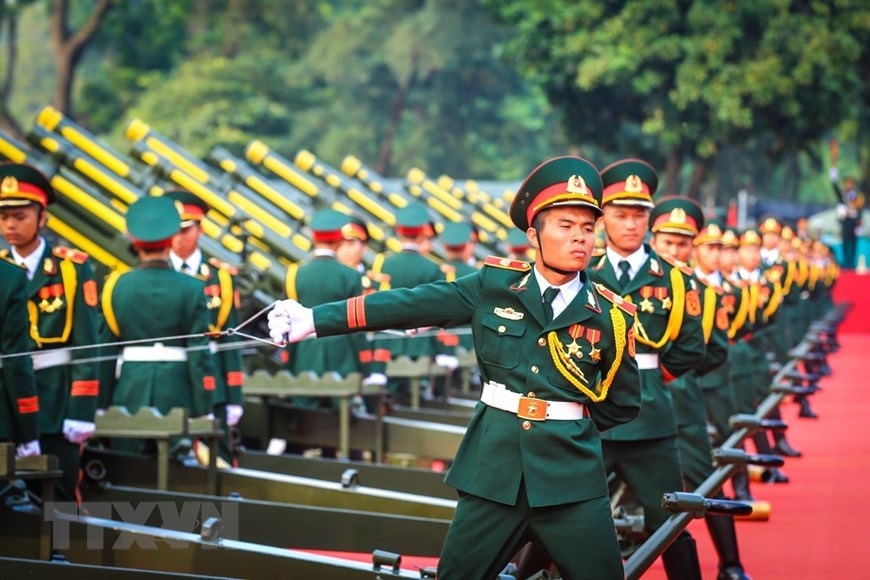 Đội nghi lễ bắn đại bác chào mừng chuyến thăm cấp Nhà nước tới Việt Nam của Tổng Bí thư, Chủ tịch Trung Quốc Tập Cận Bình. (Ảnh: Trọng Đạt/TTXVN)