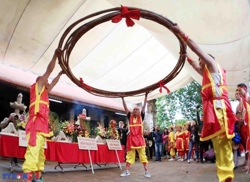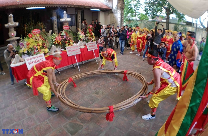Hà Nội (TTXVN 23/11/2018) Nghi thức “kéo co ngồi” trong lễ hội Đền Trấn Vũ tại phường Thạch Bàn, Long Biên (Hà Nội) là một nghi thức văn hóa dân gian rất có giá trị, một nét sinh hoạt văn hóa độc đáo của người dân nơi đây.
