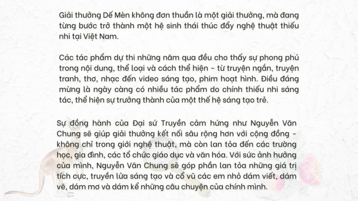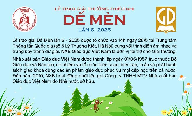 Hà Nội (TTXVN 13/5/2025) Giải thưởng Thiếu nhi Dế Mèn lần 6 - 2025Bài: Báo Thể thao và Văn hóaTrình bày: Phạm HuyẢnh: TTXVN, NVCC