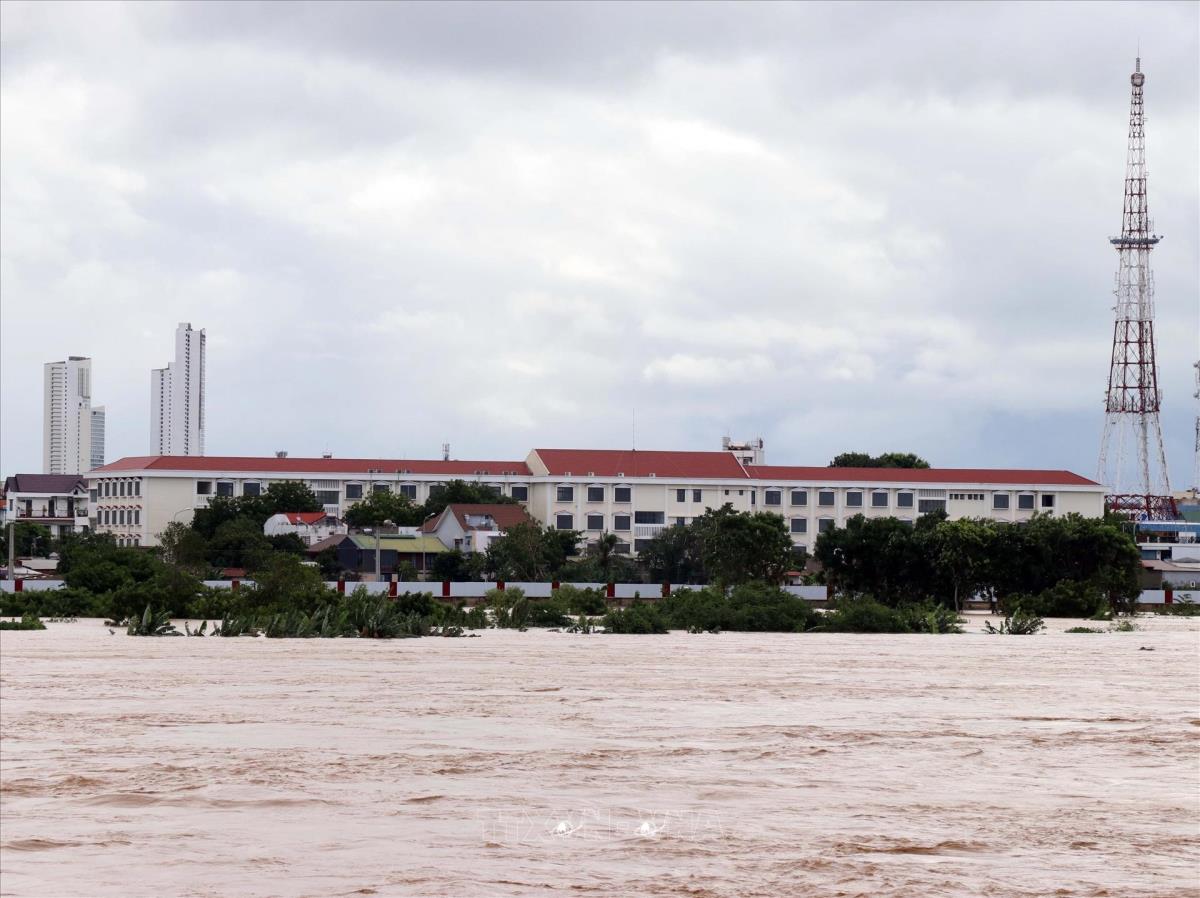 Lũ trên Sông Cái Phan Rang sáng 20/11/2025 cao trên mức động 3. Ảnh: Công Thử - TTXVN