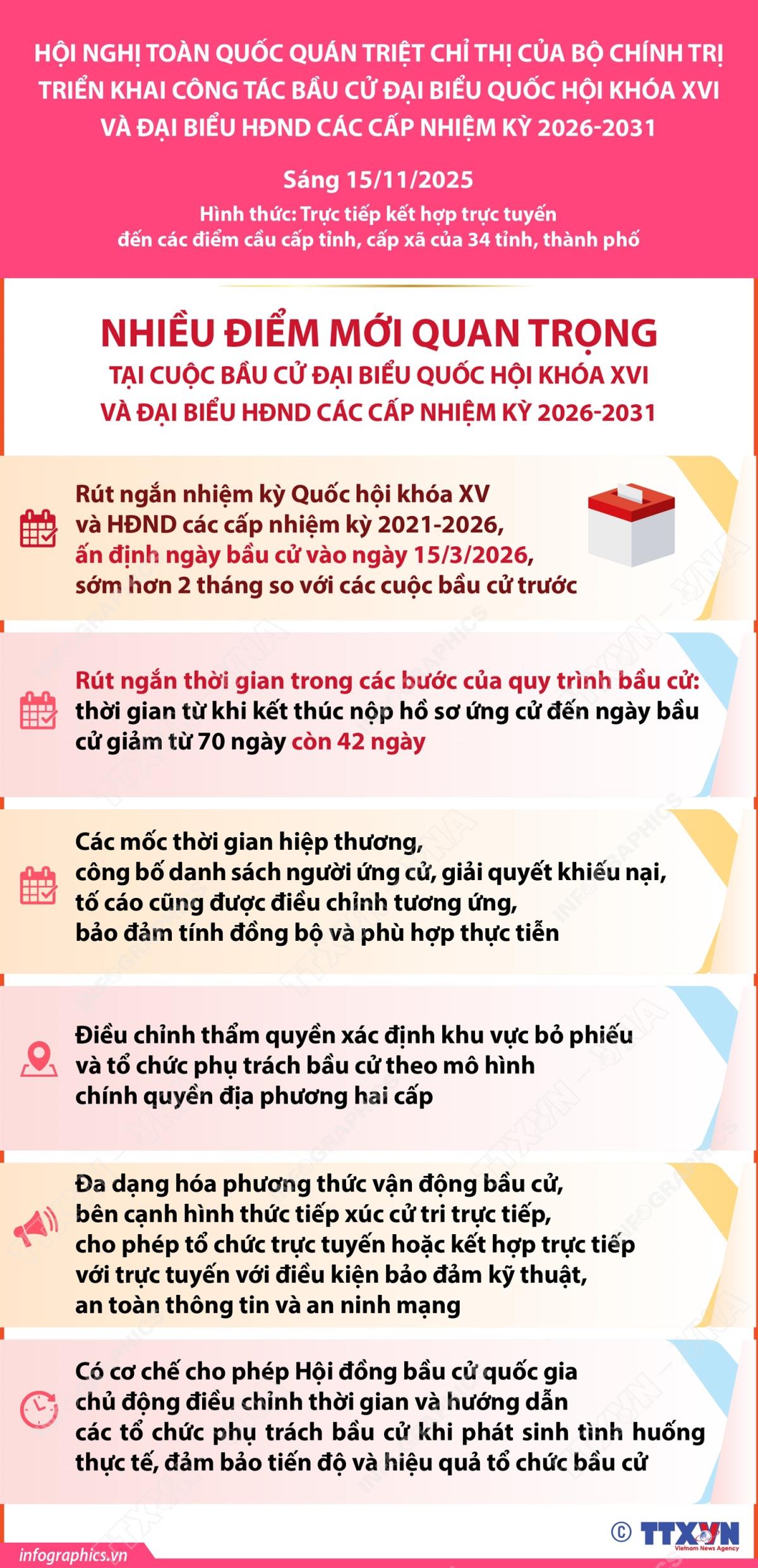 [Infographics] Nhiều điểm mới quan trọng tại cuộc bầu cử đại biểu Quốc hội khóa XVI và đại biểu HĐND các cấp nhiệm kỳ 2026-2031