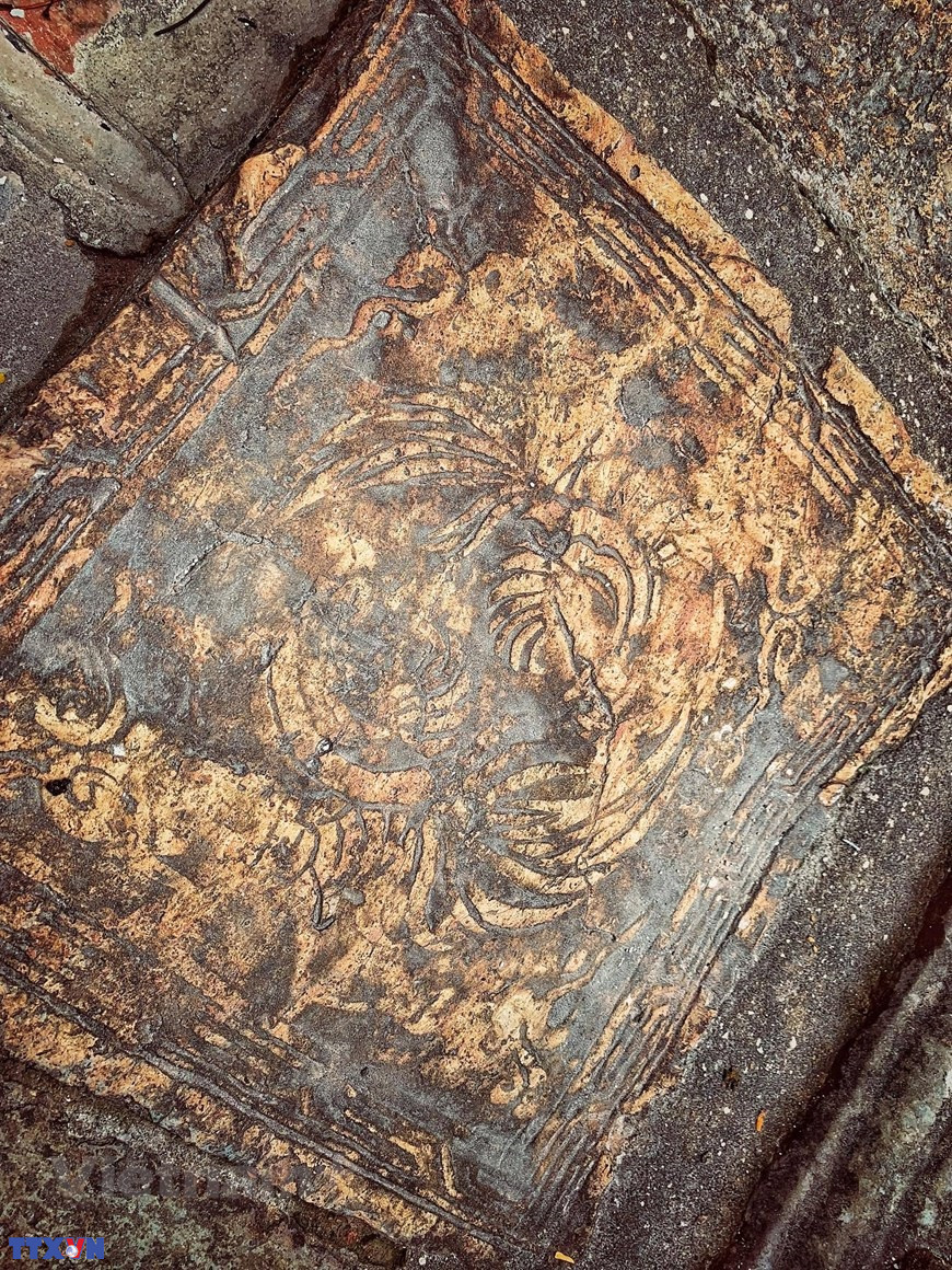 Một trong số ít những viên đá còn sót lại từ thế kỷ thứ X. (Ảnh: Xuân Mai/Vietnam+)