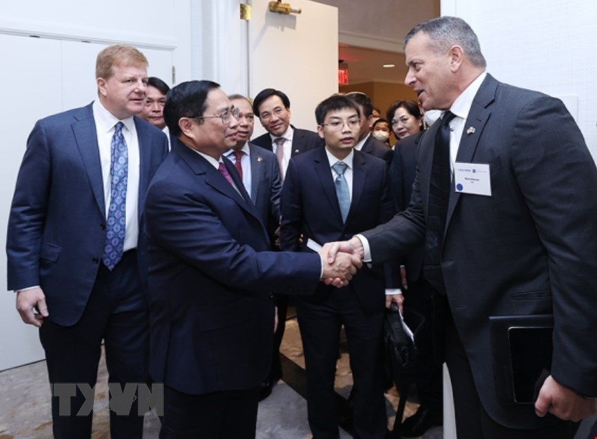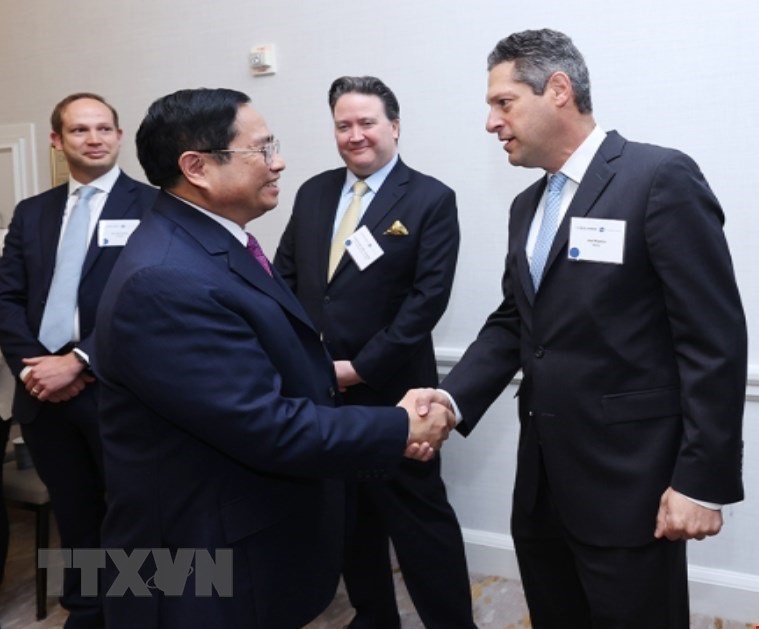 Thủ tướng Phạm Minh Chính với các nhà đầu tư và doanh nghiệp Hoa Kỳ. (Ảnh: Dương Giang/TTXVN)