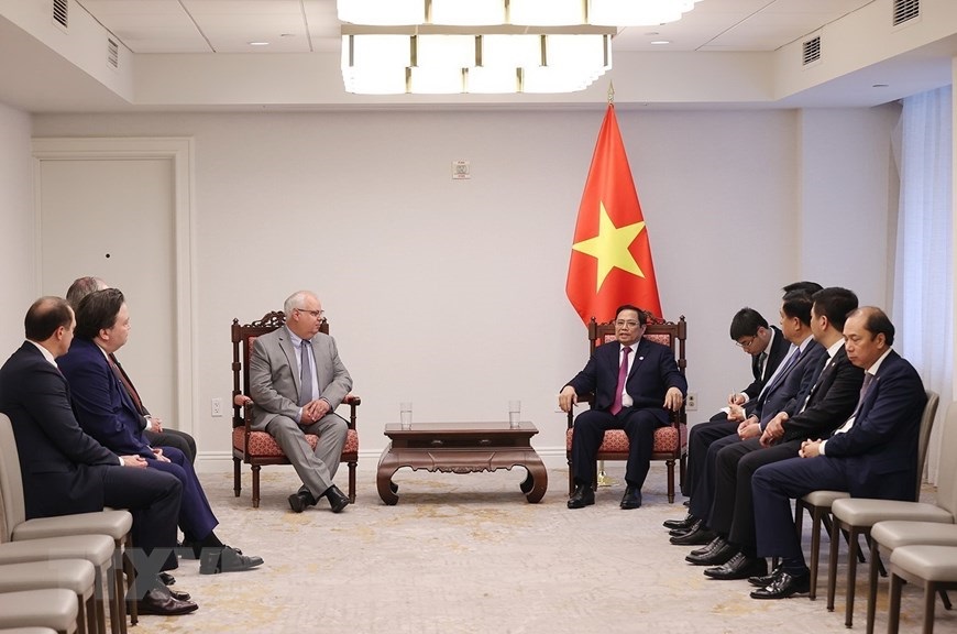 Quang cảnh Thủ tướng Phạm Minh Chính tiếp ông Roger Jenkins, Tổng giám đốc Tập đoàn Murphy Oil. (Ảnh: Dương Giang/TTXVN)