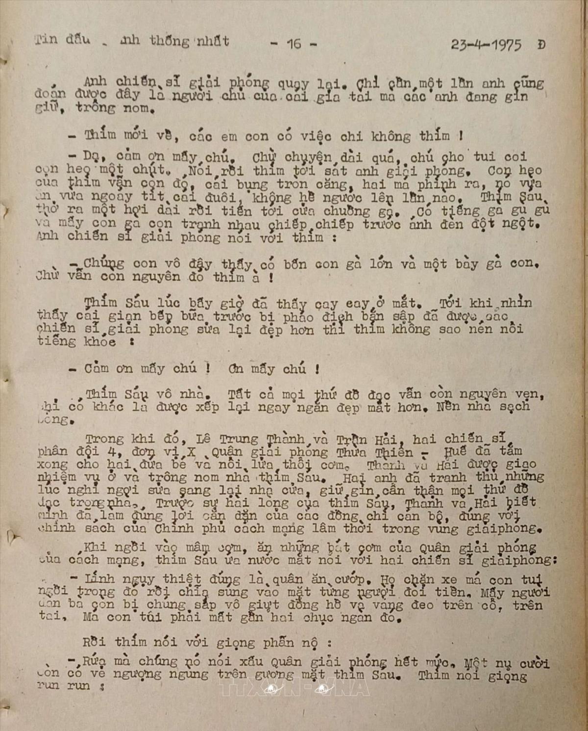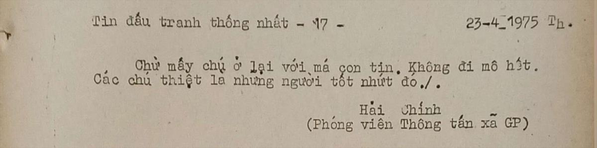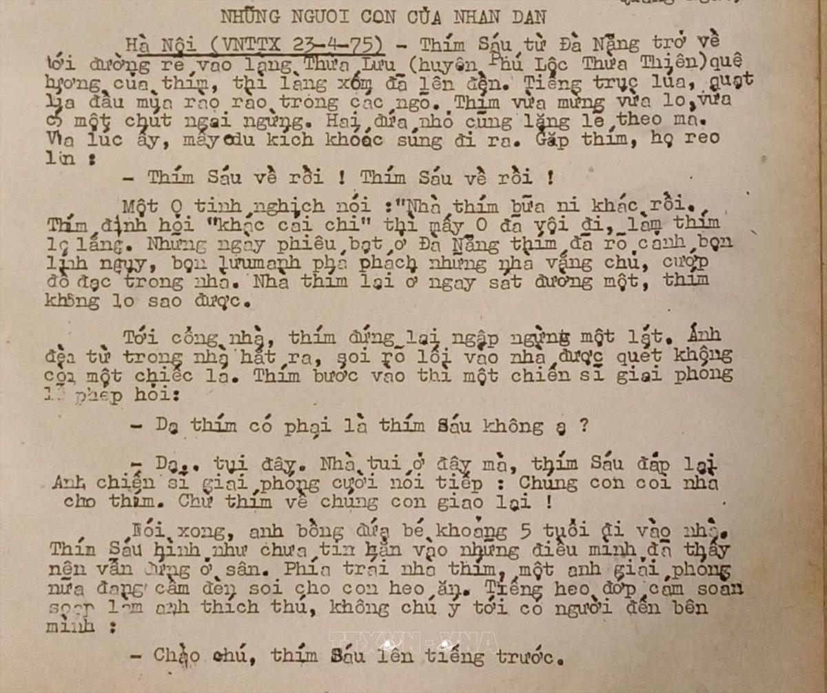 Những người con của nhân dân Tin đấu tranh thống nhất của Việt Nam Thông tấn xã, ngày 23/4/1975 Từ khóa:Giải phóng miền Namthống nhất đất nướcThông tấn xã Giải phóngPhú LộcHuế