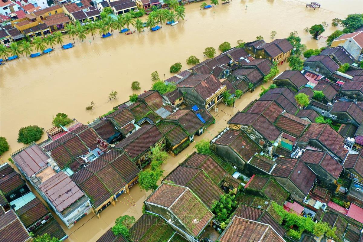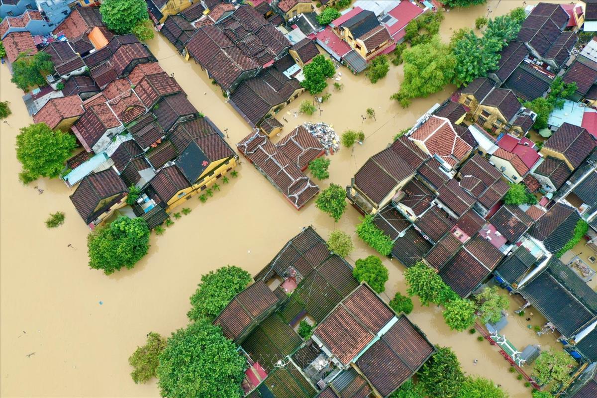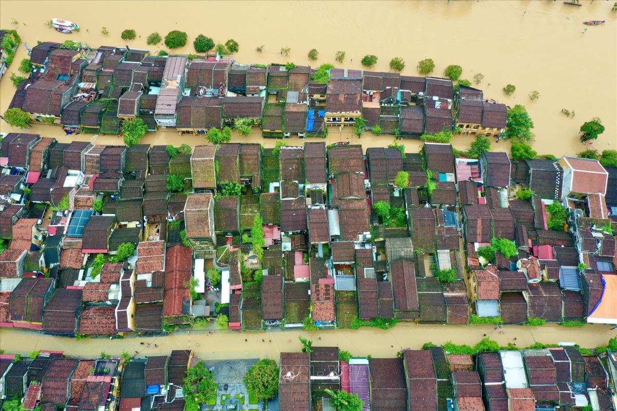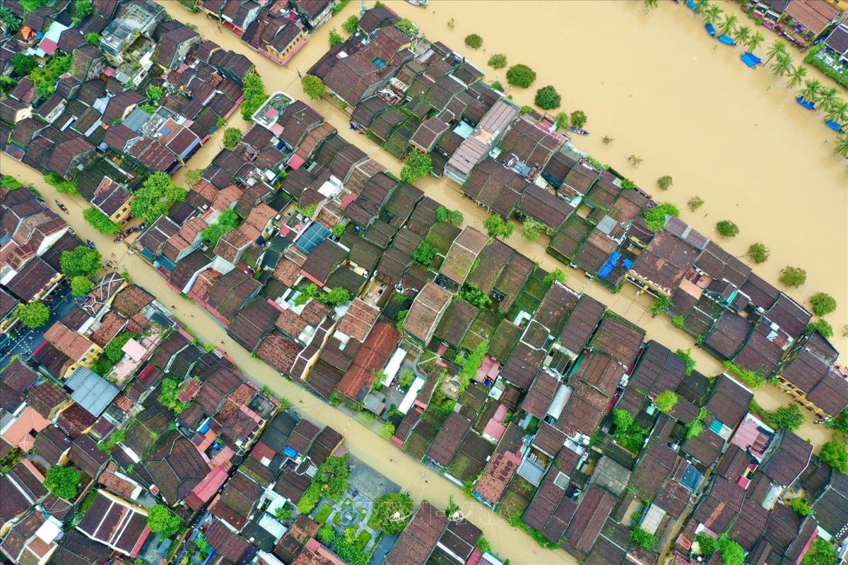 Khu nhà cổ và khu phố du lịch Hội An ngập trong nước lũ (tháng 10/2025). Ảnh: Trần Lê Lâm - TTXVN