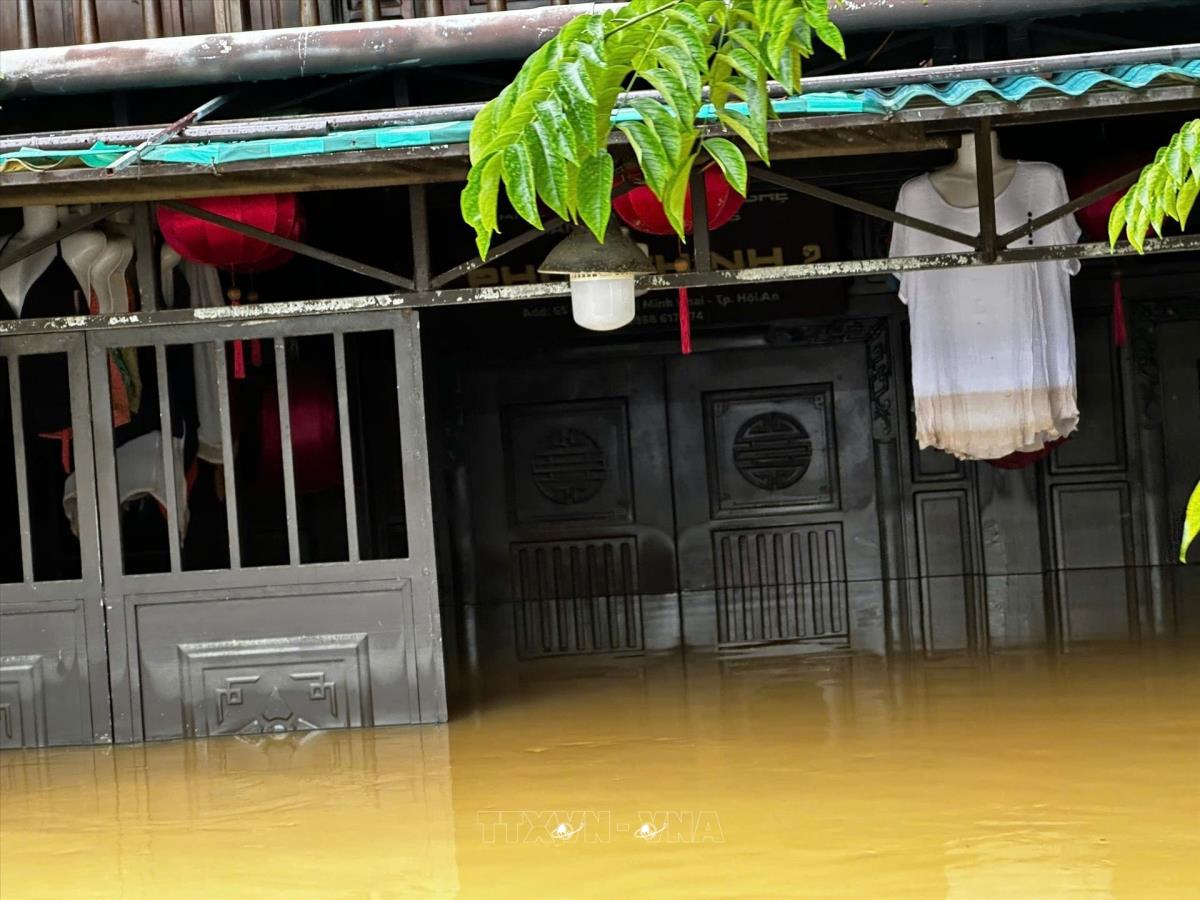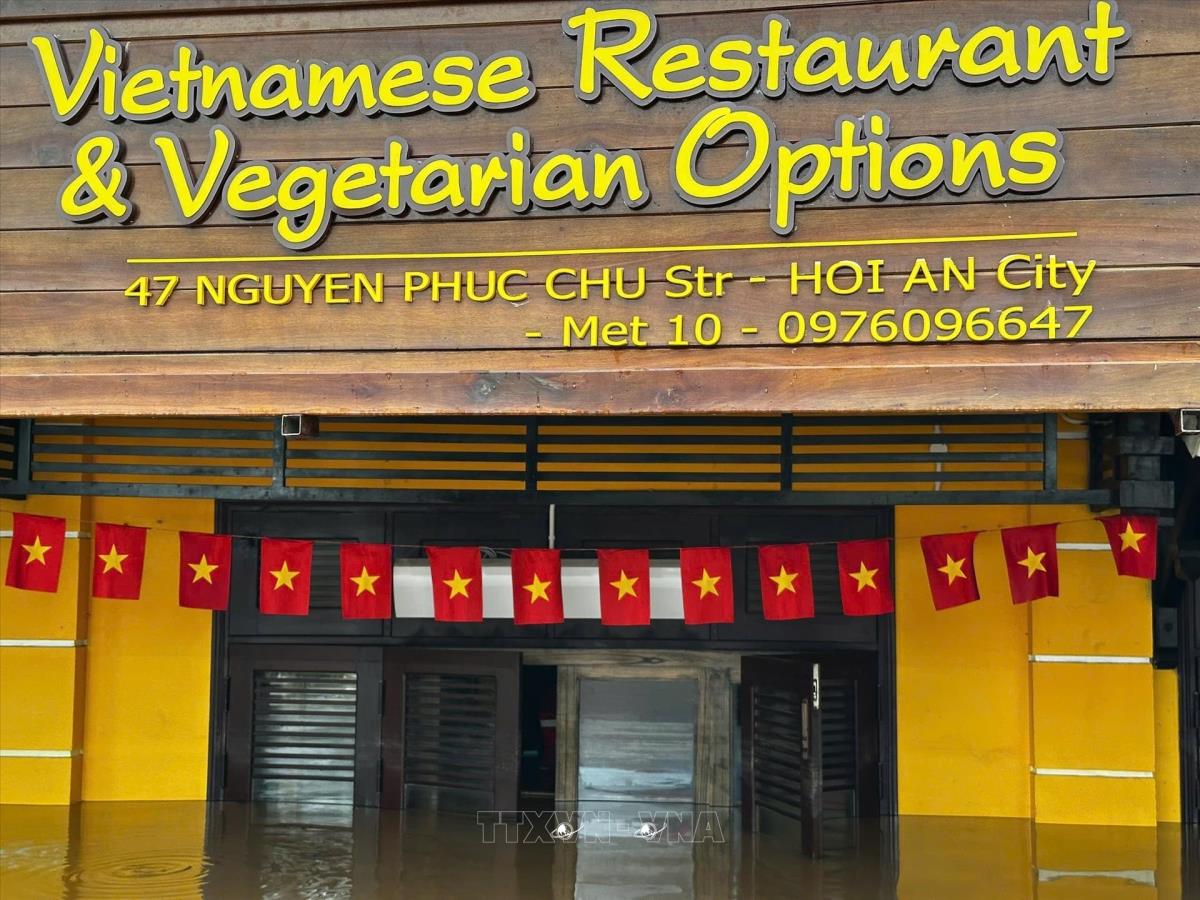 Nước ngập gần lút cửa ra vào của một nhà hàng ở phố cổ Hội An (tháng 10/2025). Ảnh: Trần Lê Lâm - TTXVN