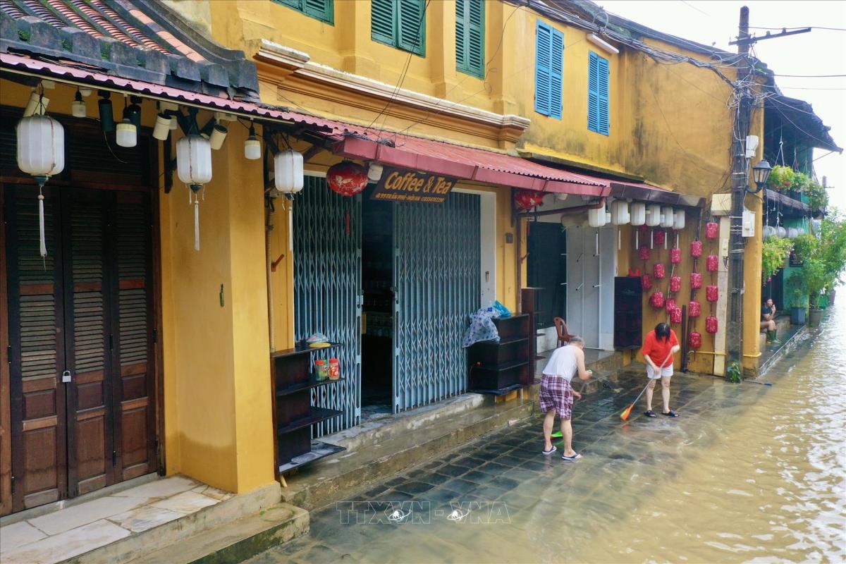Người dân phố cổ Hội An theo con nước rút tới đâu tranh thủ dọn vệ sinh để sớm trở lại cuộc sống bình thường (tháng 10/2025). Ảnh: Trần Lê Lâm - TTXVN