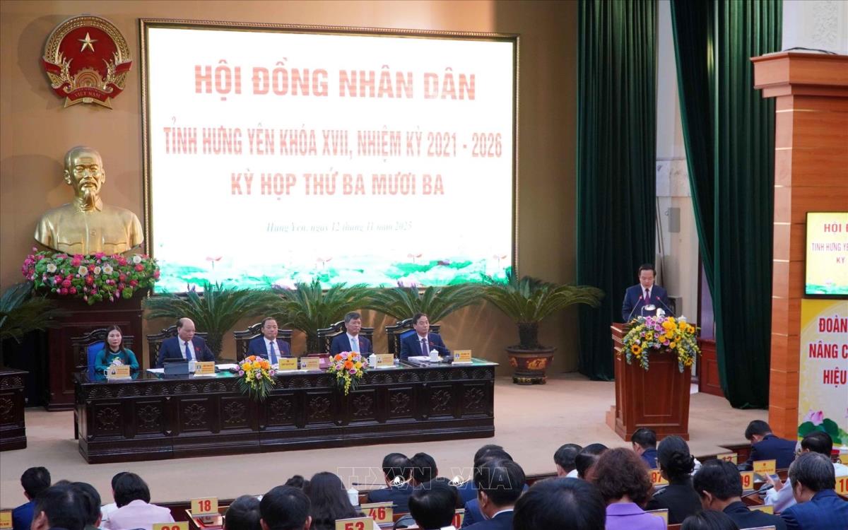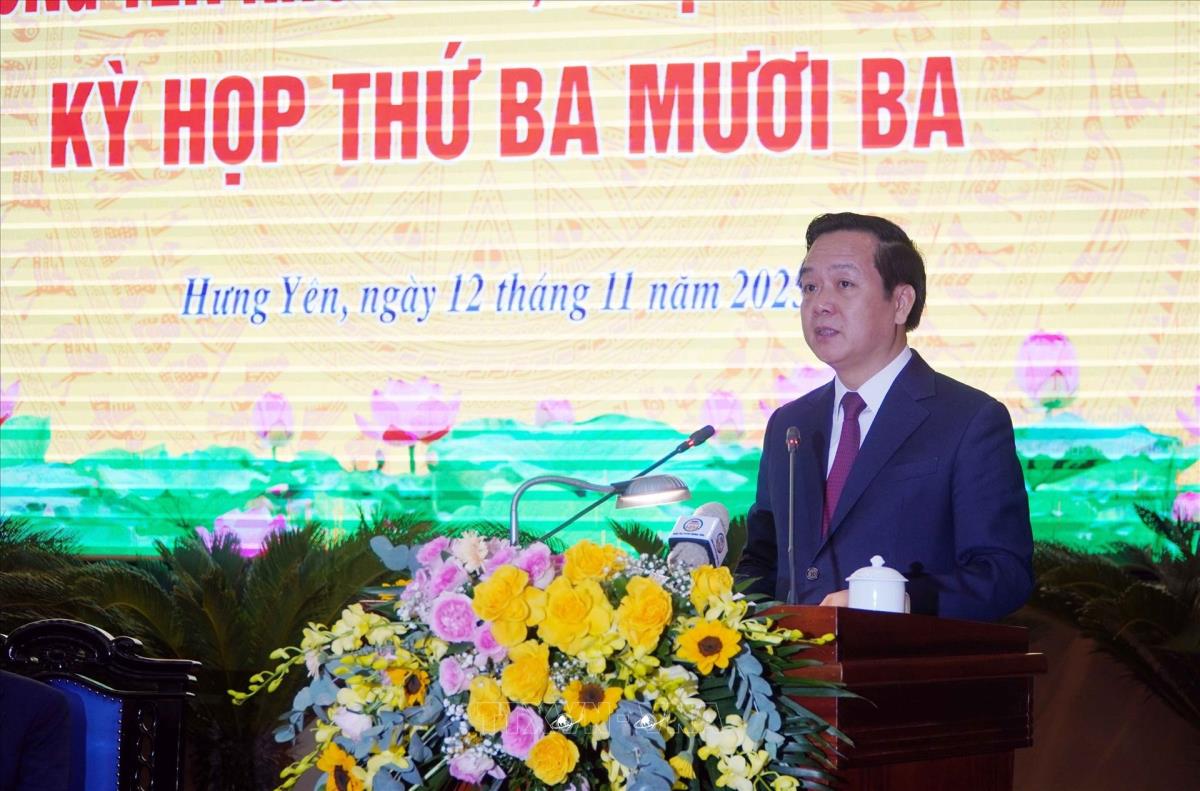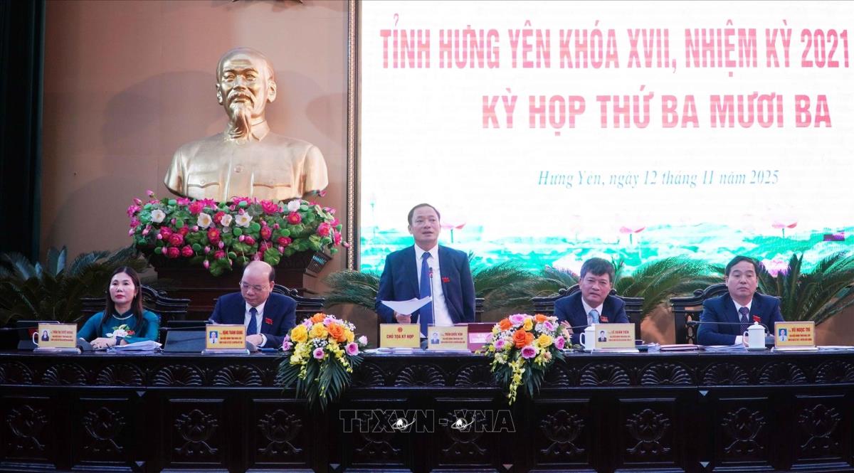 Hưng Yên (TTXVN 12/11/2025) Ngày 12/11, HĐND tỉnh Hưng Yên khóa XVII, nhiệm kỳ 2021-2026 đã tổ chức kỳ họp thứ 33, thông qua nhiều nghị quyết quan trọng. Tại kỳ họp, HĐND tỉnh đã thực hiện quy trình miễn nhiệm và bầu Chủ tịch UBND tỉnh nhiệm kỳ 2021-2026.