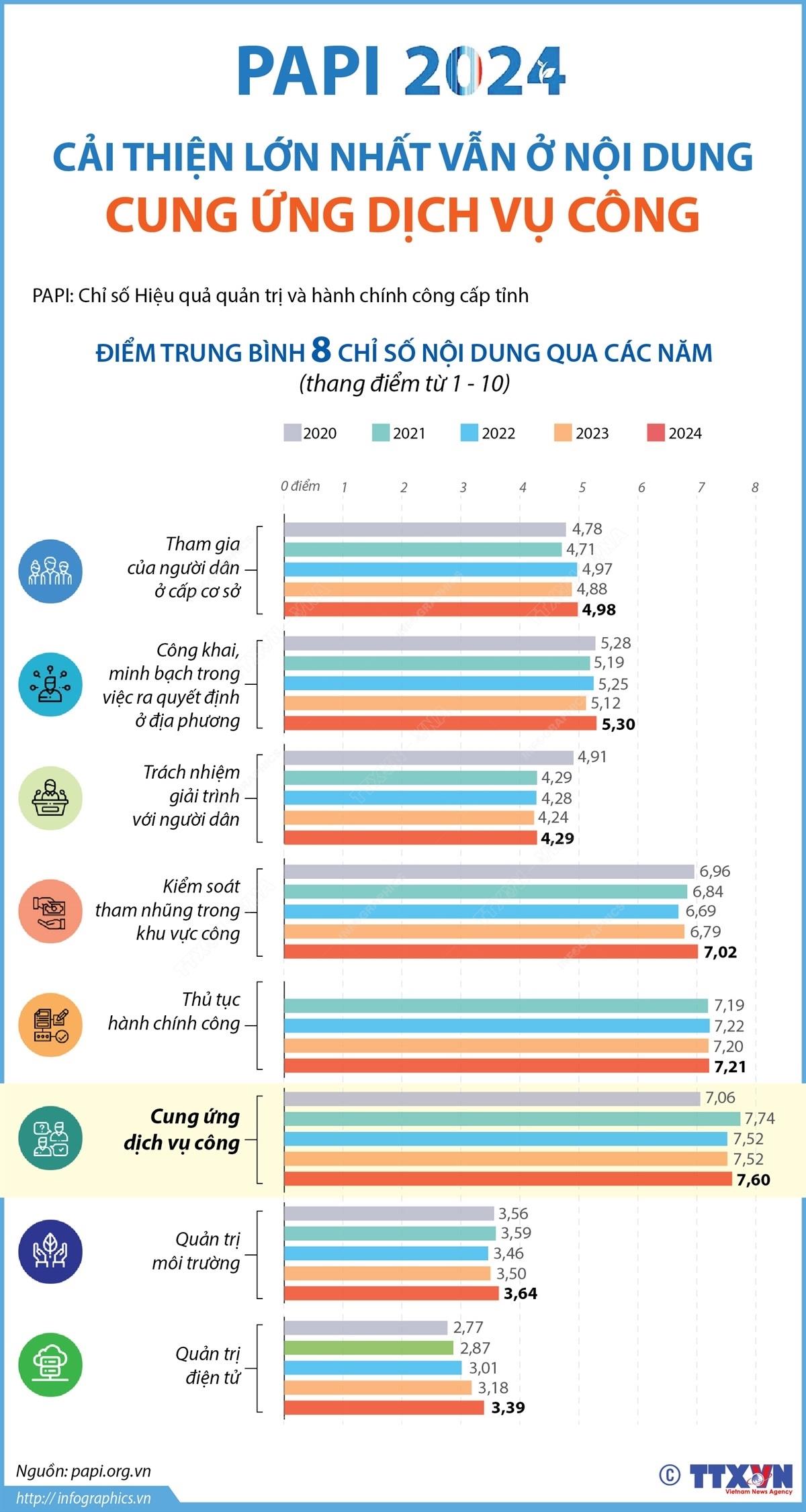[Infographics] PAPI 2024: Cải thiện lớn nhất vẫn ở nội dung Cung ứng dịch vụ công