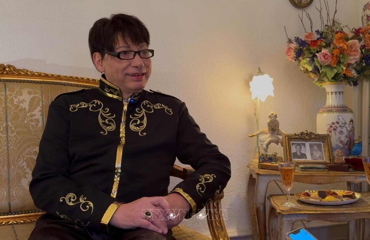 Ông Patrick-Édouard Bloch, con trai út của vị hoàng đế cuối cùng triều Nguyễn, Vua Bảo Đại. Ảnh: Thu Hà/TTXVN tại Pháp