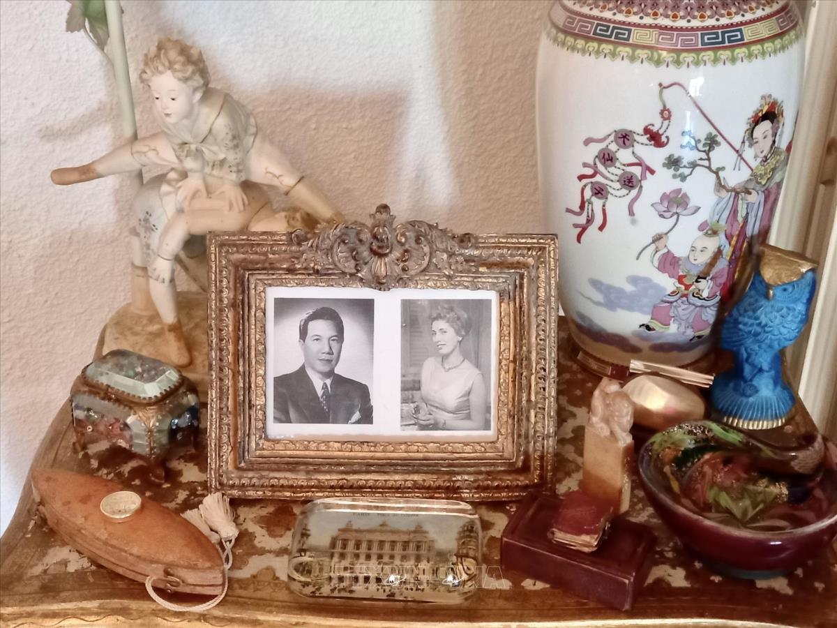 Bức ảnh vua cha Bảo Đại và mẹ ông, bà Christiane Bloch-Carcenac, được đặt trang trọng trên chiếc bàn cạnh ghế sô pha, trong phòng khách ở căn hộ của ông. Ảnh: Nguyễn Thu Hà/TTXVN tại Pháp