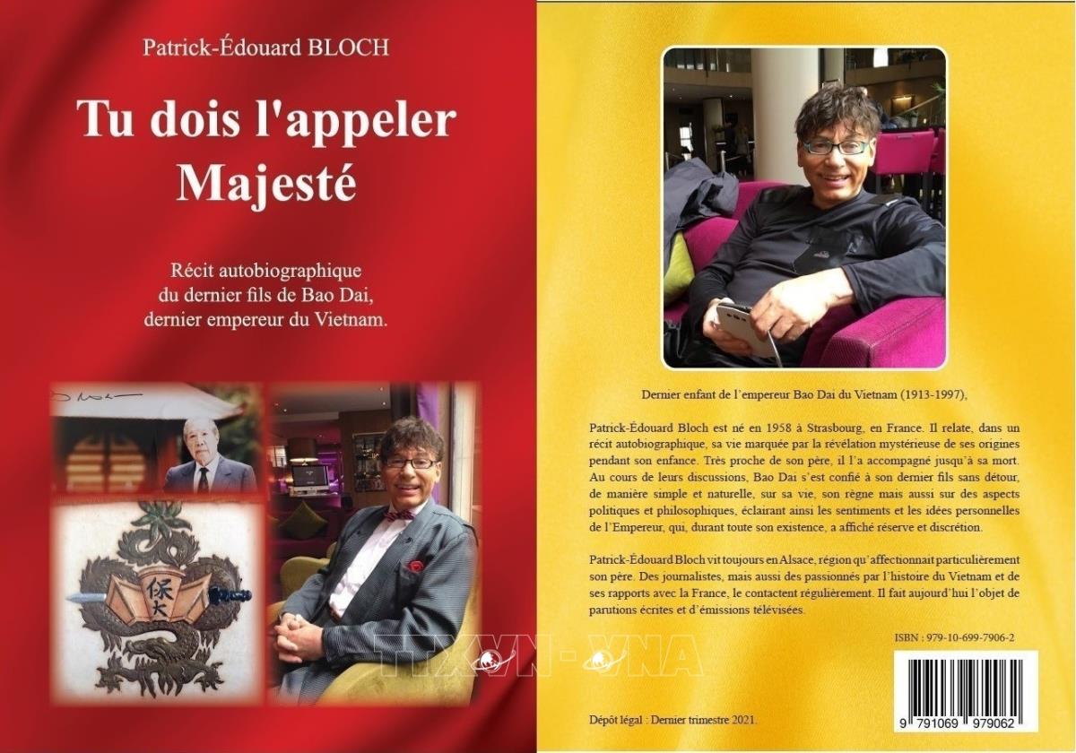Bìa cuốn tự chuyện của ông Patrick-Édouard Bloch, có tựa đề "Tu dois l'appeler Majesté" (Tạm dịch là ‘Con phải gọi Người là Bệ hạ’), xuất bản năm 2021. Ảnh: Thu Hà/TTXVN tại Pháp