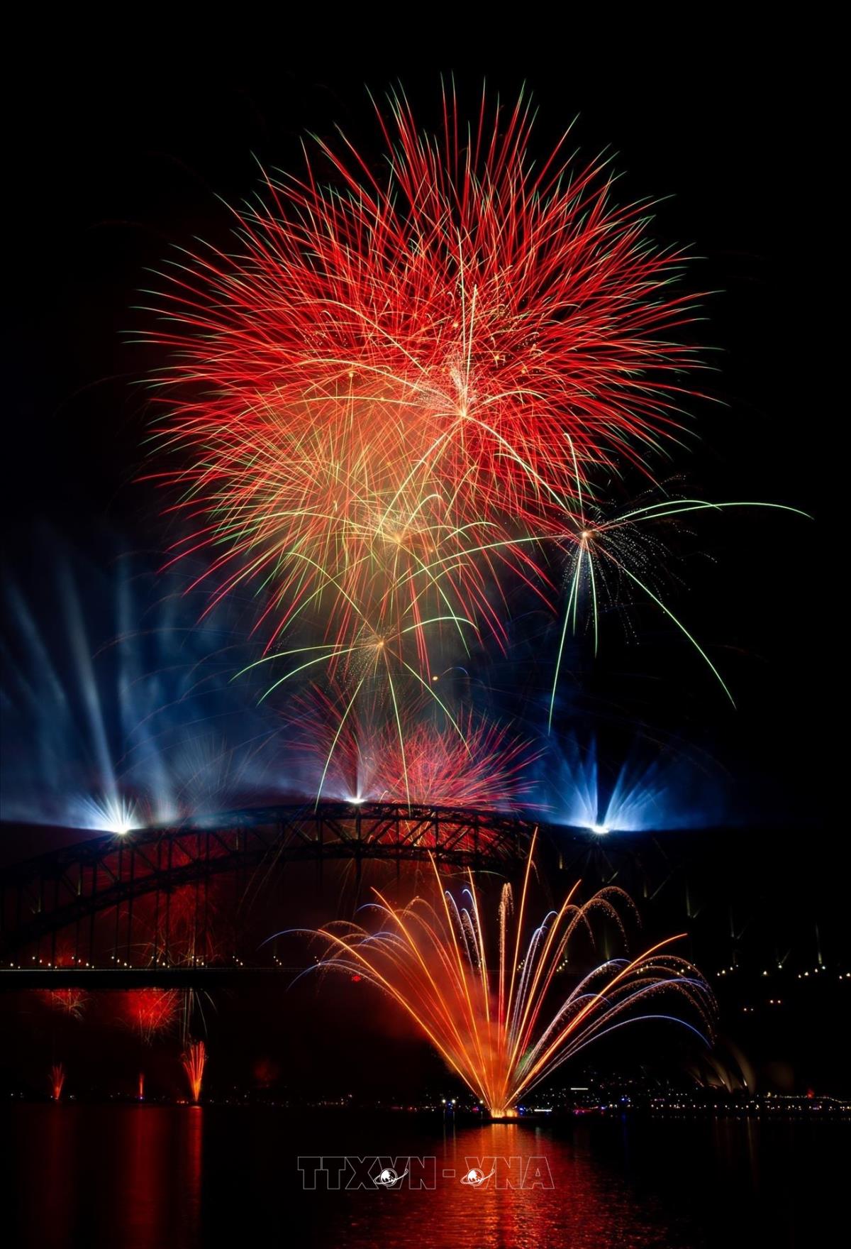 Pháo hoa rực rỡ chào đón năm mới 2026 tại Cầu Cảng Sydney, Australia. Ảnh: THX/TTXVN