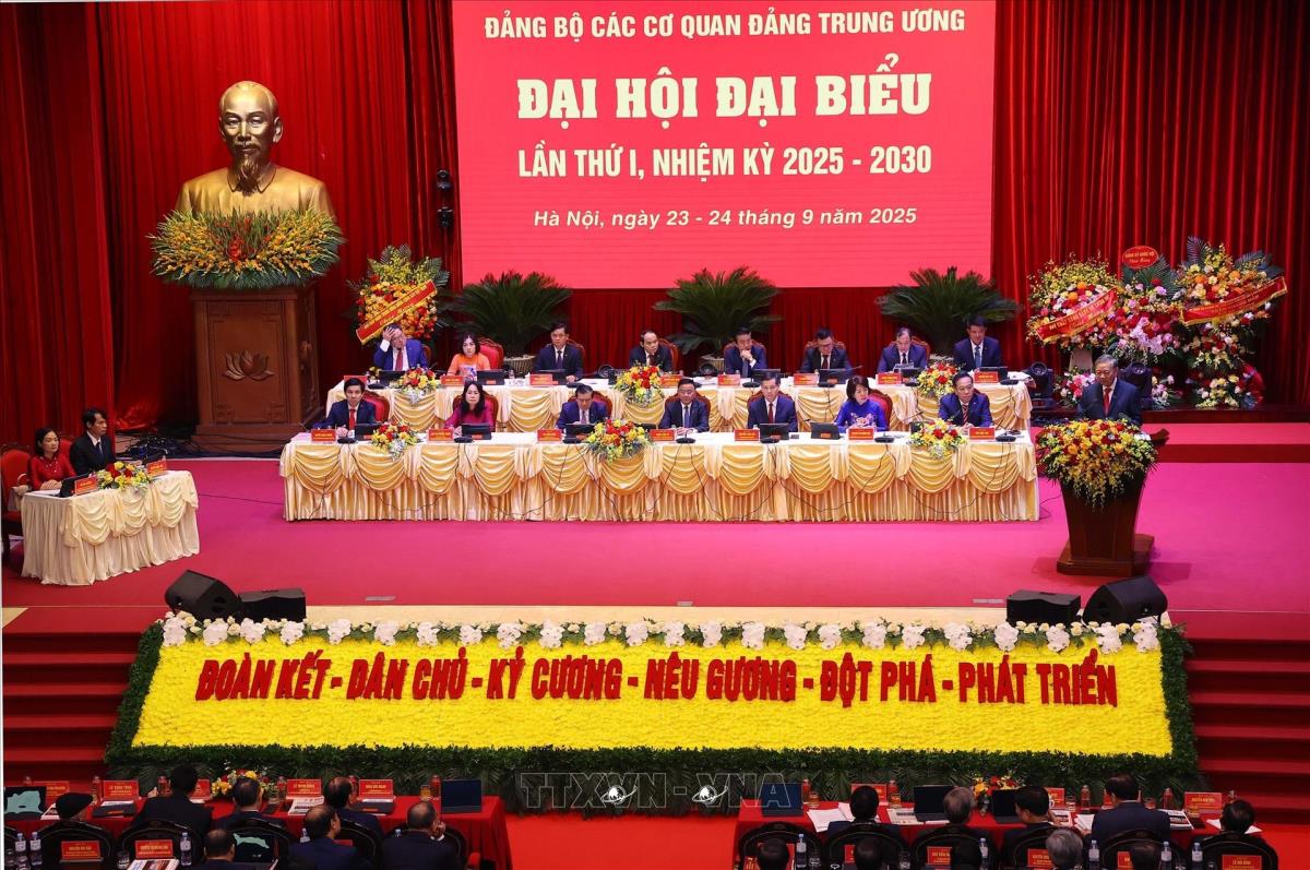 Hà Nội (TTXVN 24/9/2025) Sáng 24/9, tại Hà Nội, Đại hội đại biểu Đảng bộ các cơ quan Đảng Trung ương lần thứ I, nhiệm kỳ 2025-2030 đã khai mạc trọng thể, với sự tham dự của 293 đại biểu chính thức đại diện cho hơn 8.700 đảng viên của 14 Đảng bộ trực thuộc Đảng bộ các cơ quan Đảng Trung ương.