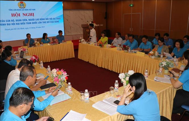 Thành phố Hồ Chí Minh (TTXVN 31/10/2025) Chiều 31/10, tại Thành phố Hồ Chí Minh, Tổng Liên đoàn Lao động Việt Nam tổ chức Hội nghị lấy ý kiến góp ý của cán bộ, đoàn viên, người lao động đối với dự thảo các văn kiện trình Đại hội đại biểu toàn quốc lần thứ XIV của Đảng.