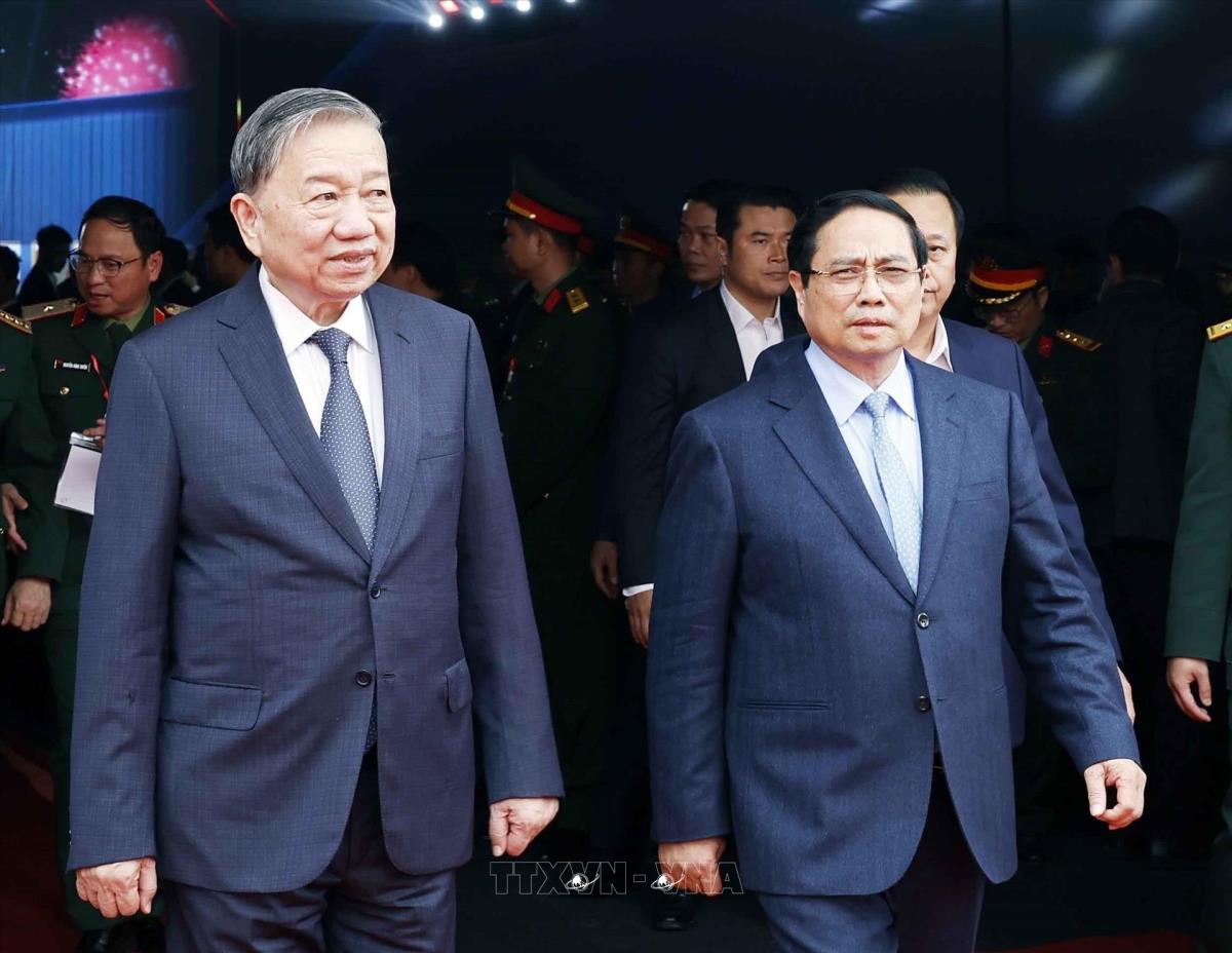 Tại buổi lễ, Tổng Bí thư Tô Lâm, Thủ tướng Phạm Minh Chính cùng các đồng chí lãnh đạo đã thực hiện nghi thức khởi công Nhà máy chế tạo chíp bán dẫn đầu tiên của Việt Nam
