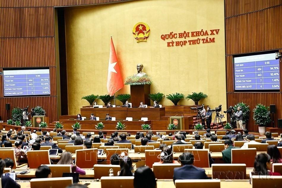 Sáng 16/6/2025, Quốc hội biểu quyết thông qua Nghị quyết của Quốc hội sửa đổi, bổ sung một số điều của Hiến pháp năm 201Ngày 16/6/2025, tại Kỳ họp thứ 9, Quốc hội khóa XV, Quốc hội thông qua Nghị quyết 203/2025/QH15 về sửa đổi, bổ sung một số điều của Hiến pháp nước Cộng hòa xã hội chủ nghĩa Việt Nam, trong đó có quy định về chính quyền địa phương 02 cấp. Ảnh: Doãn Tấn – TTXVN