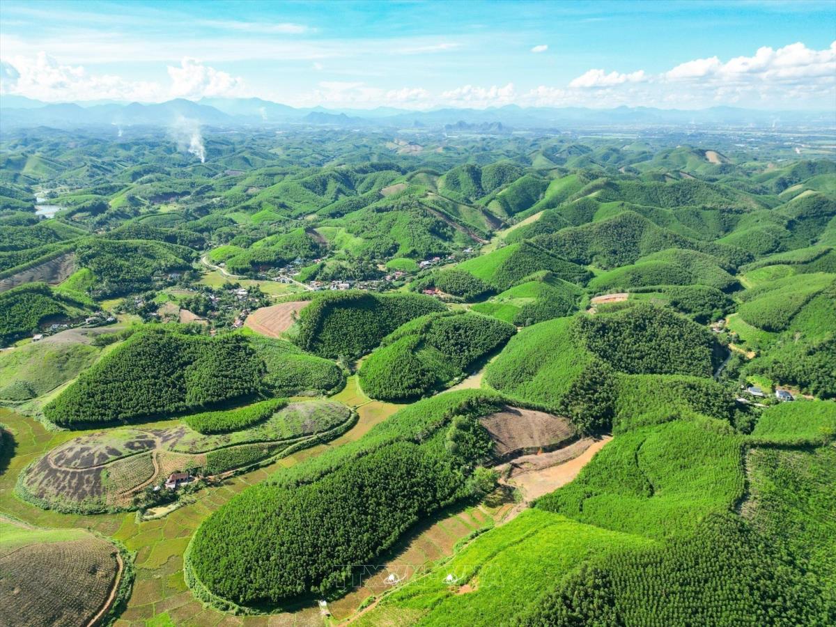 Đảng đã xác định rõ bảo vệ môi trường, ứng phó với biến đổi khí hậu và bảo tồn đa dạng sinh học là yêu cầu gắn liền với phát triển kinh tế – xã hội, không thể tách rời hay xem nhẹ. Trong ảnh: Mô hình trồng rừng keo tại huyện Triệu Sơn, tỉnh Thanh Hoá giúp hấp thụ lượng lớn CO₂, góp phần giảm phát thải khí nhà kính. Ảnh: Lê Đông - TTXVN