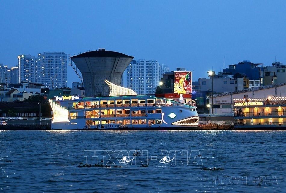 Du lịch Việt Nam được xác định là một ngành kinh tế mũi nhọn vì Việt Nam có tiềm năng du lịch đa dạng và phong phú. Trong ảnh: Tàu du lịch cao cấp phục vụ ăn uống, giải trí, đưa du khách khám phá Sài Gòn về đêm. Ảnh: Hồng Đạt - TTXVN